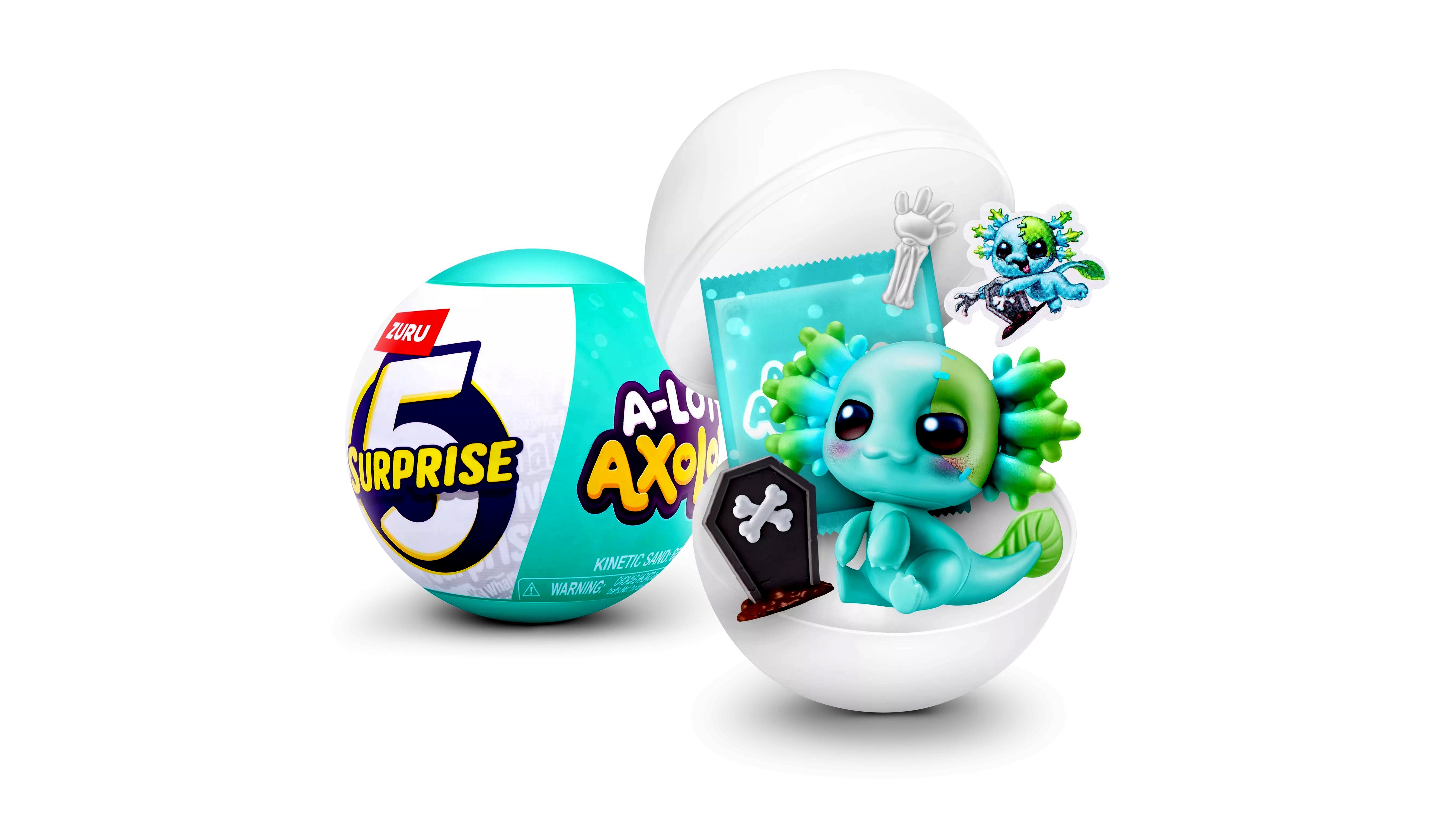 A 5 Surprise Axolotl meglepetésfigura egy kapszulában található, amely egy aranyos axolotl figurát és különböző kiegészítőket tartalmaz. A gyerekek véletlenszerűen kapnak egy figurát, amelyet összegyűjthetnek. Kreativitást és kézügyességet fejlesztő játék.
