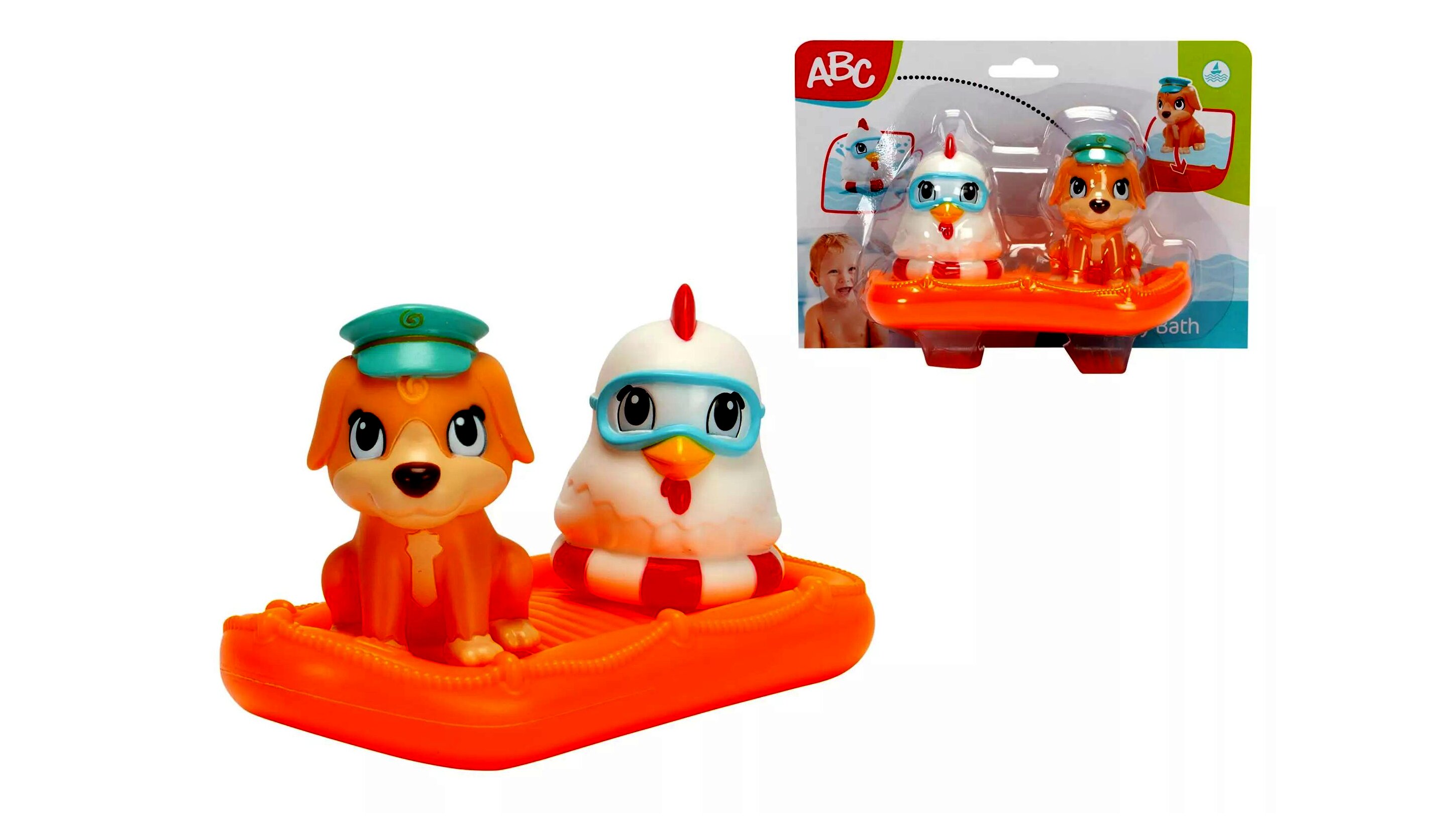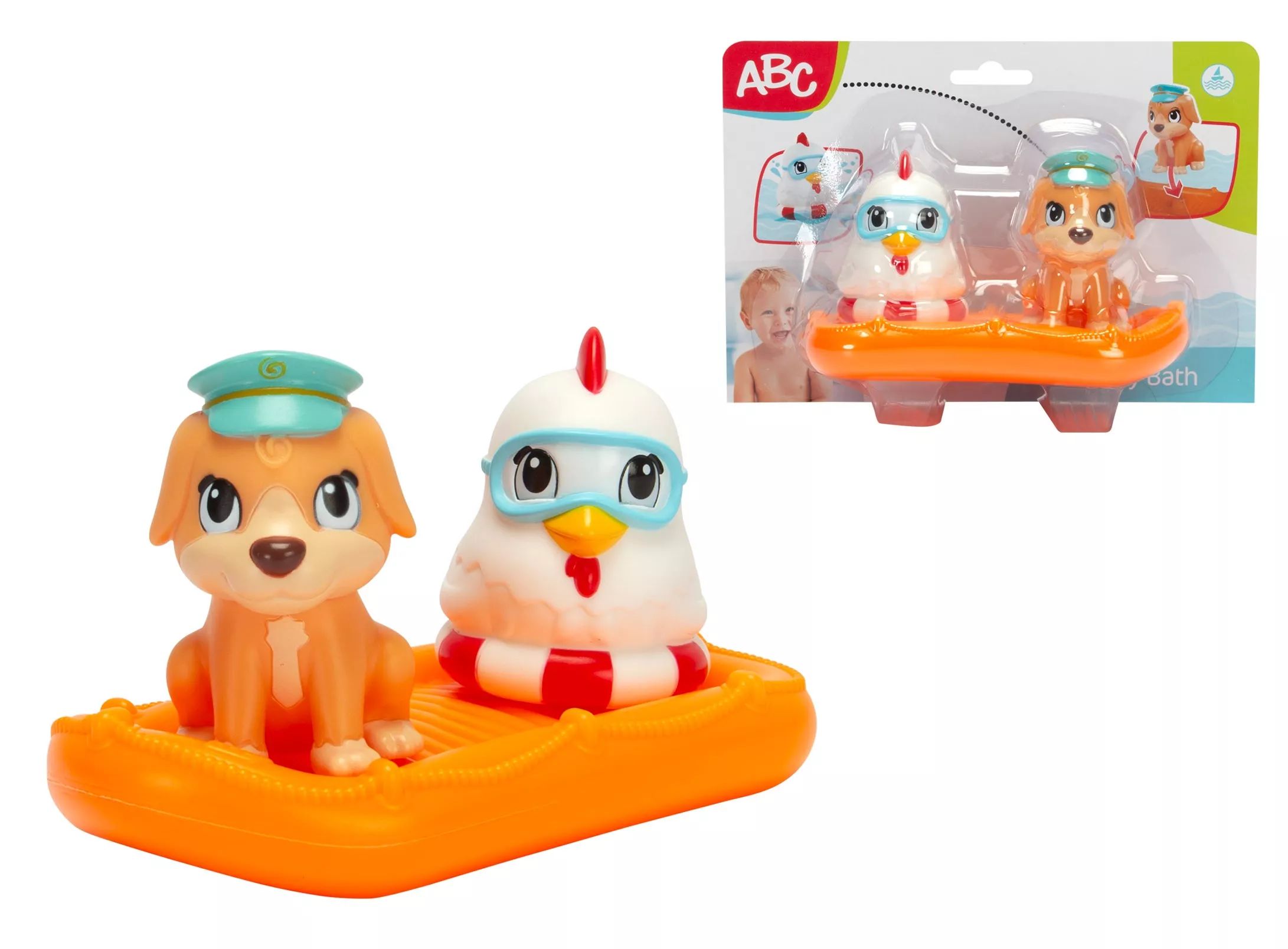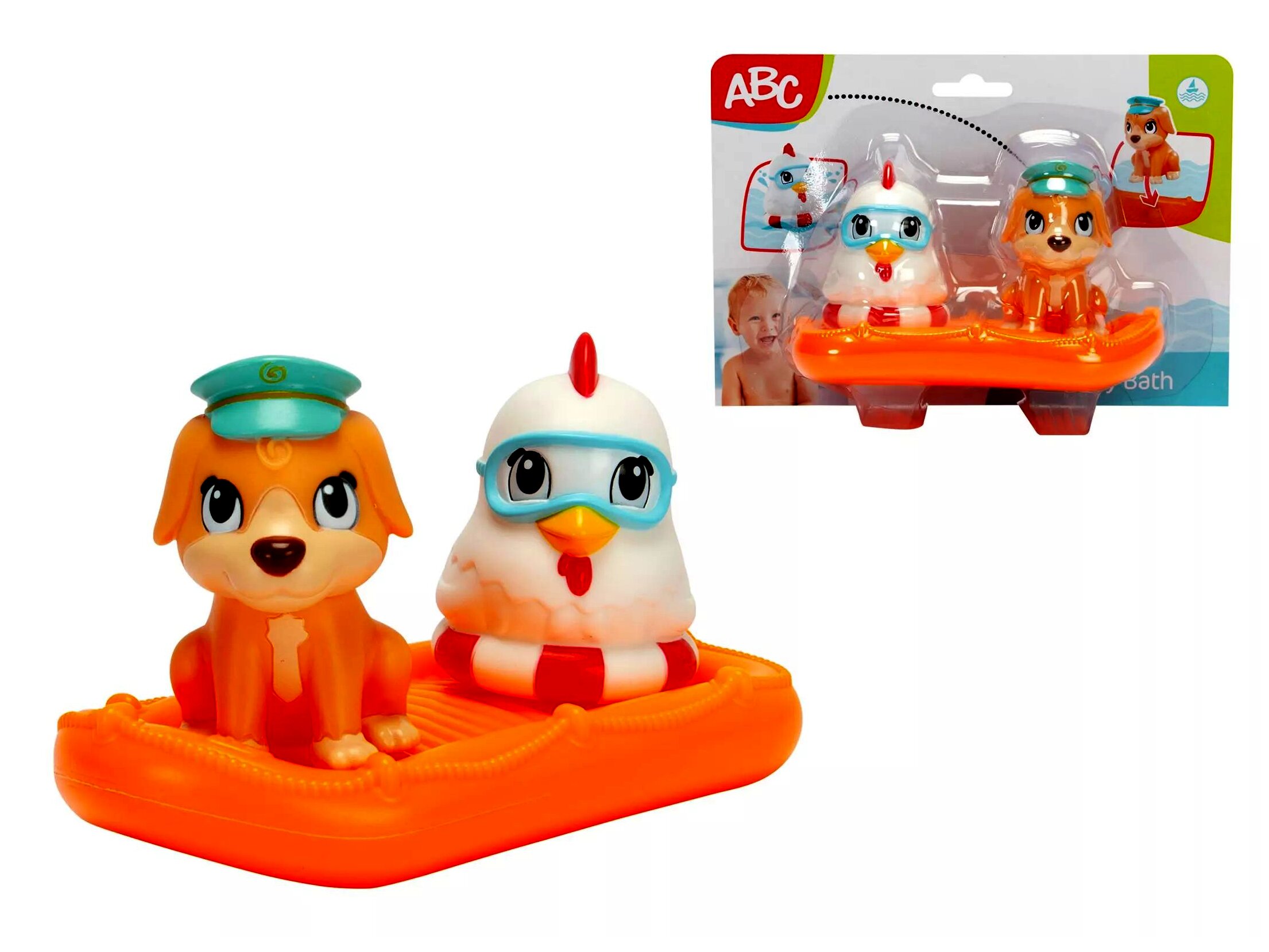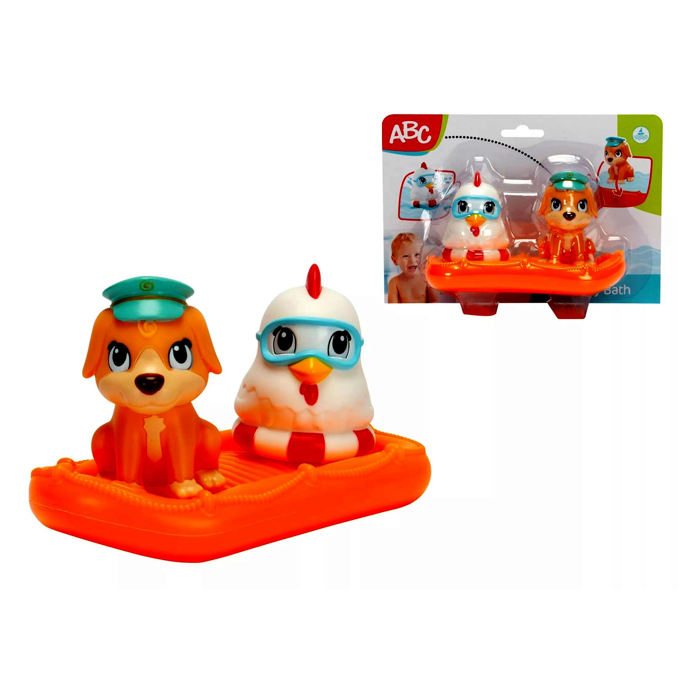 A fürdés garantáltan szórakoztatóbb lesz a gyerekek számára ezzel az aranyos tengerész kutyával és csirkével. Az állatok rögzíthetők a kis tutajon, így biztonságban úszkálhatnak a vízen fürdőzés közben. A két figura elkísérheti a gyerekeket az esti fürdőzéshez, de akár nyári pancsolás, vagy tengerparti nyaralásra is magukkal vihetik újdonsült barátaikat.A játék lehetőséget teremt a szerepjátékra, amely során fejlődik a gyerekek képzelete, fantáziája, kreativitása és kommunikációja.