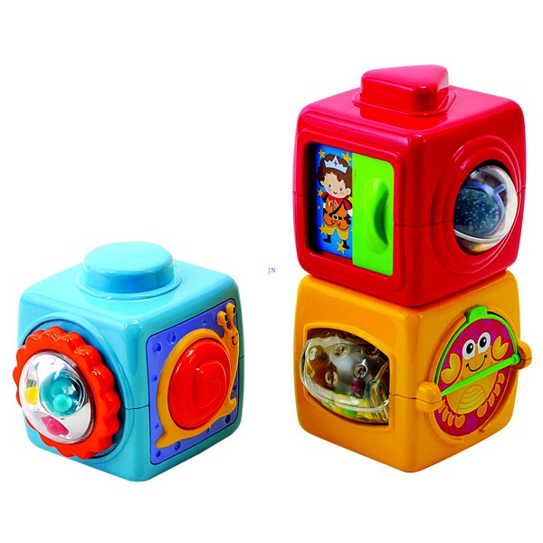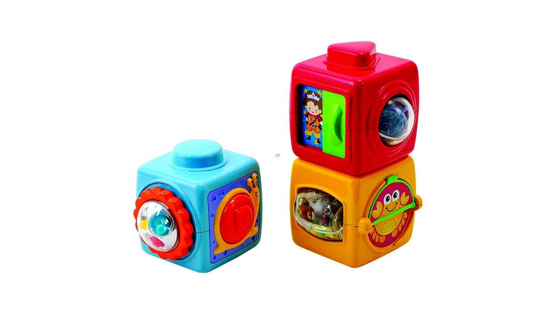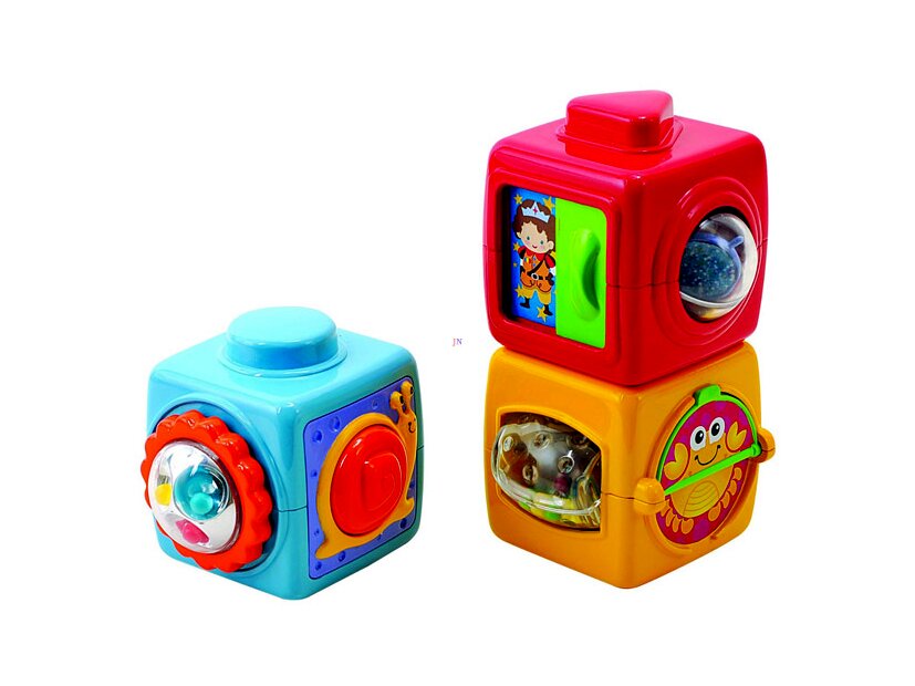 Műanyagból készült, csörgő-zörgő ABC kockák készségfejlesztő bébijáték, vegyes színekben. A csomag három ABC kockát tartalmaz, minden oldalukon más és más meglepetéssel. A kockákon csörgő-zörgő játékok, állatfigurák, számok és betűk is megtalálhatók, a kockák nagyon jól fejlesztik a megfigyelést és a kézügyességet is. Az ABC kockák egymásra tehetők, így a gyermek a toronyépítést is gyakorolhatja. Kockák élhosszúsága: 7 cm.