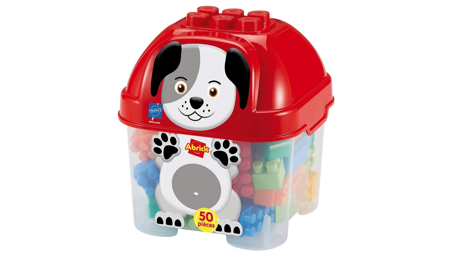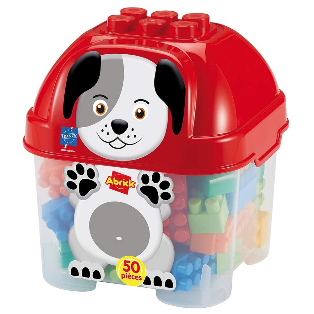 - Az 50 darabos Abrick építőkocka szett egy aranyos kutyás dobozban kapott helyet