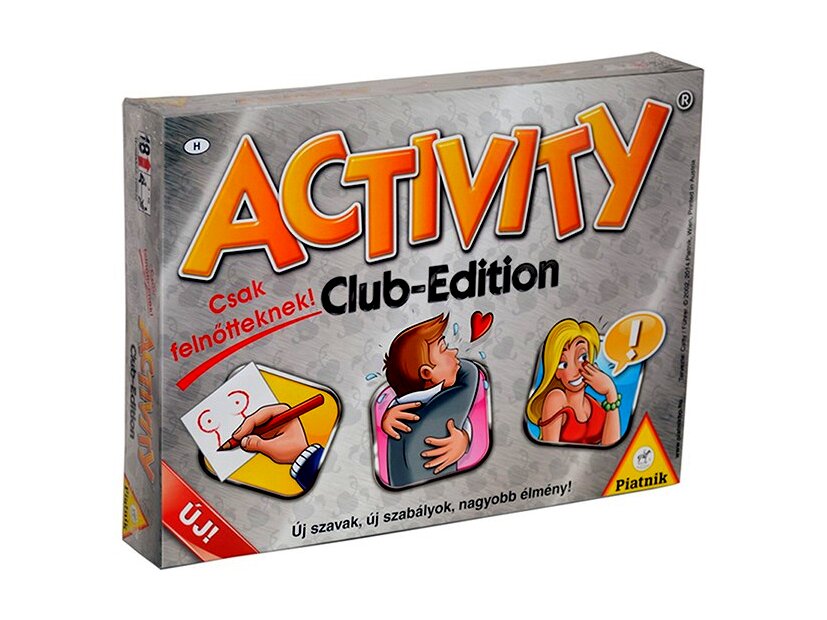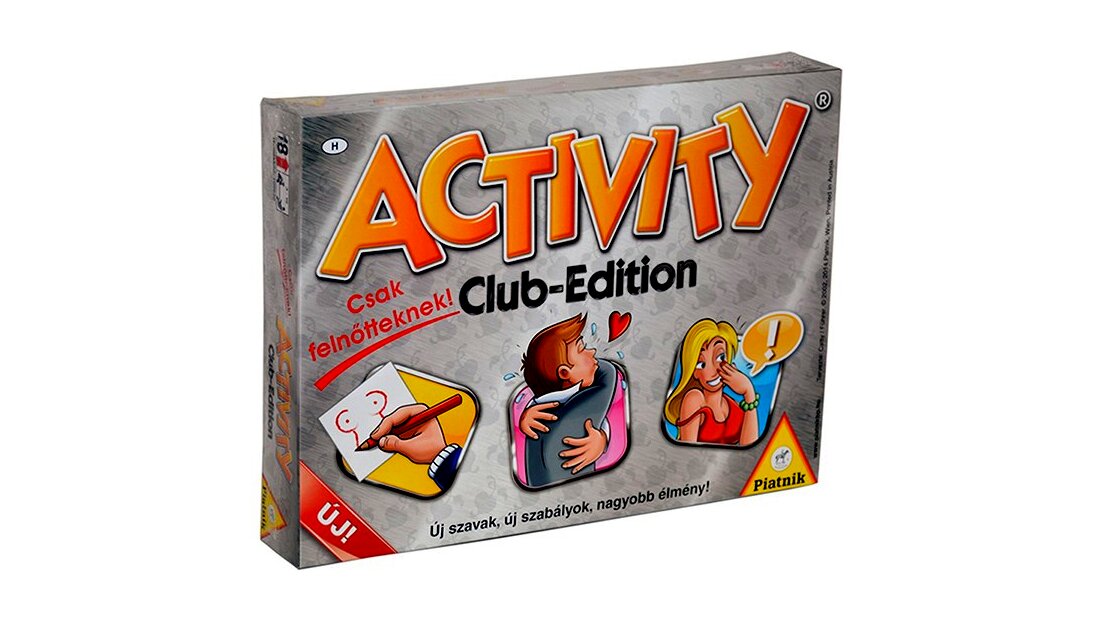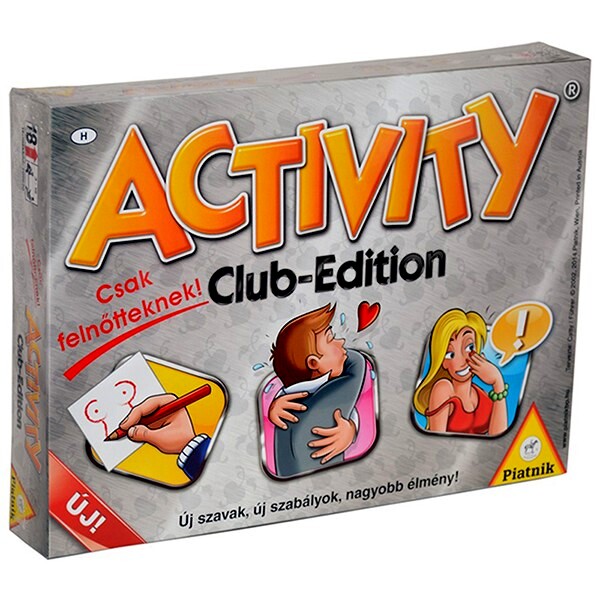 A már jól ismert Activity társasjátékcsalád egy új taggal bővült! Az Activity Club-Edition - Csak felnőtteknek! lényege, hogy erotikus és szleng kártyákat kevertek össze, így nyújtva igazi szórakozást nagykorúaknak. Érjen a te csapatod elsőként a célba! Mutogatnod kell? Vigyázz! Nem beszélhetsz! Ha rajzolsz, betűket és számokat nem vethetsz a papírra! Ha pedig körül kell írnod a húzott kártyán talált szavad, akkor nem mondhatod ki mit láttál leírva, még ragozott formában sem! Csak és kizárólag körülírhatod! Ugye már rémlik, hogyan kell játszani a világ legjobb társasát? A fülledt hangulat csak fokozza a jókedvet!