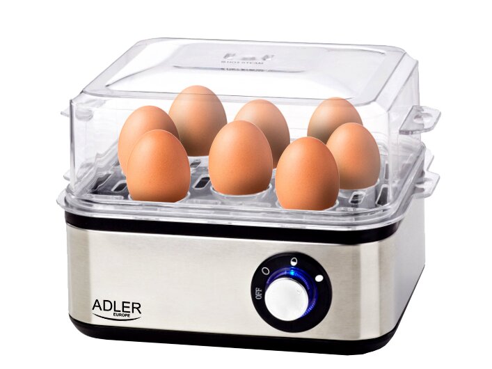 Az Adler AD 4486 tojásfőzővel egyszerre akár 8 tojást készíthet el, a kívánt keménységi foknak megfelelően (lágy, közepes vagy kemény). A készülék a víz elpárolgásakor hangjelzéssel jelez és automatikusan kikapcsol, így a reggeli előkészítése gyorsabb és kiszámíthatóbb.