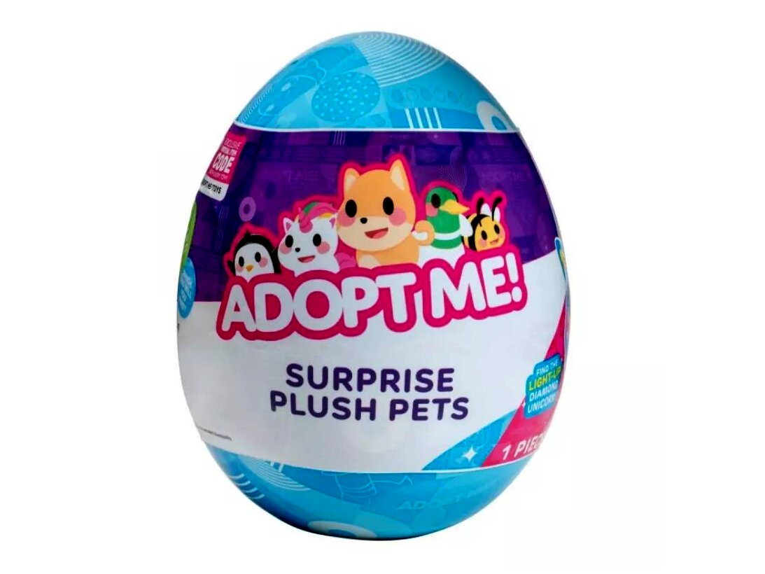 A Robloxról ismert Adopt Me! játék imádnivaló karakterei alig várják, hogy beköltözzenek a kis gamerek, és persze az aranyos plüssök rajongóinak szobájába. A tojásban egy 13 cm magas plüssfigura rejlik, amelynek segítségével a gyerekek offline is átélhetik az Adopt Me! videójáték adta izgalmakat. És ez még nem minden! A figura egy exkluzív virtuális kóddal érkezik, amit a játékosok a videójátékba belépve aktiválhatnak.A kis figurák között cica, kutya, papagáj, unikornis, sárkány, zsiráf, pingvin és még sok más rejlik. Az, hogy a 12 karakter közül melyik bújt meg a tojásban, legyen meglepetés!