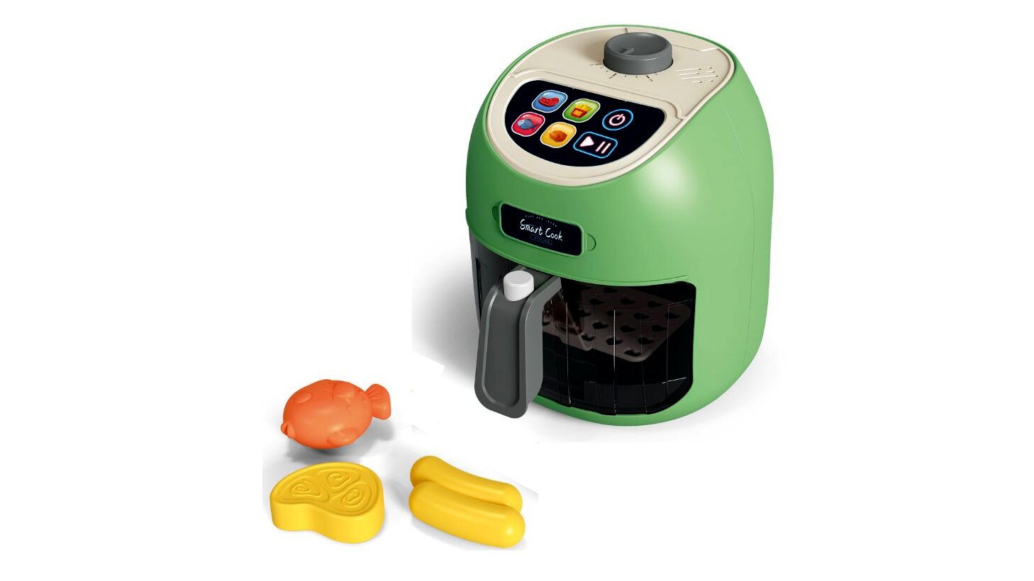 Az egészséges táplálkozás az ételek elkészítési módjával kezdődik: például nem mindegy, hogy a husit olajban vagy forrólevegős sütőben sütjük ki. Ezzel a 22 cm-es Air Fryer-el a gyerekek eljátszhatják, ahogy megsütik a csomagban rejlő finomságokat: a kolbászokat, a halat, vagy a szelet husit.A játéksütő pont úgy néz ki, mint az igazi, funkciói pedig még élethűbbé varázsolják a játékélményt. A gyerekek az érintőképernyőn kiválaszthatják az étel típusát, a bekapcsológombbal elindíthatják a a szerkezetet, majd a sütő fény- és hangeffektek kíséretében működésbe jön. És ez még nem minden! A behelyezett játék élelmiszerek színe a sütés hatására megváltozik - akárcsak a valóságban!