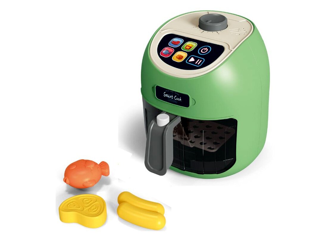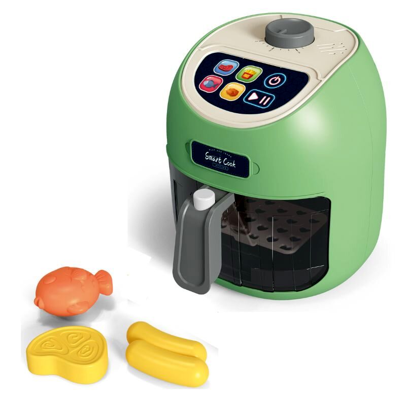 Air fryer játékszett hang- és fényhatásokkal, színváltó ételekkel, zöld