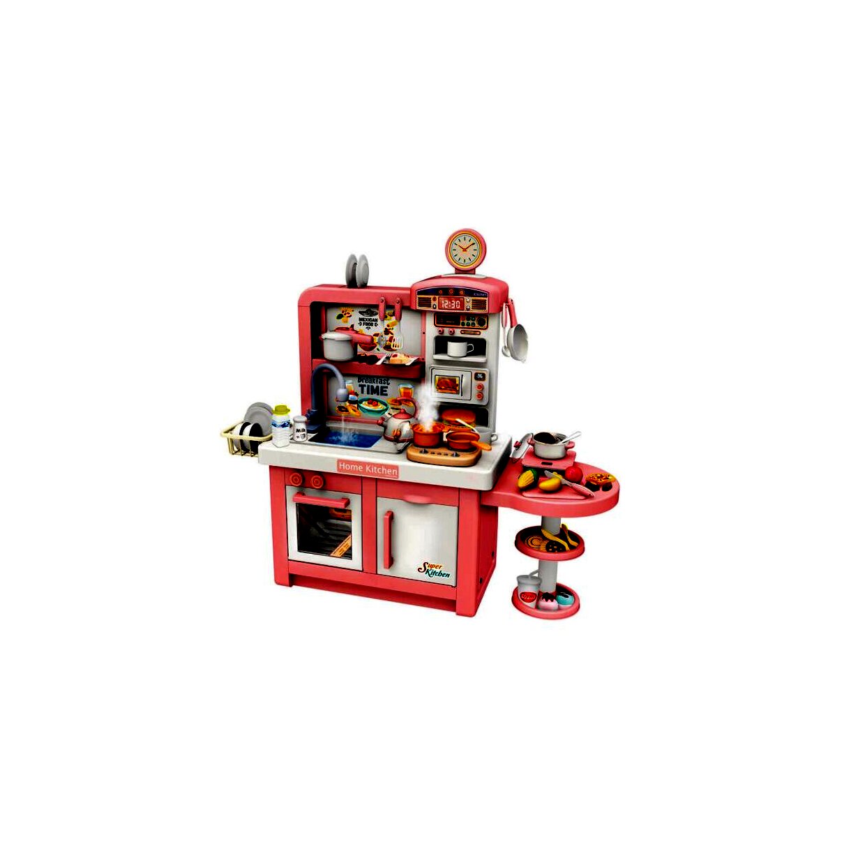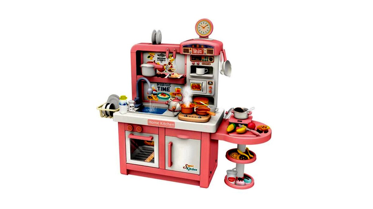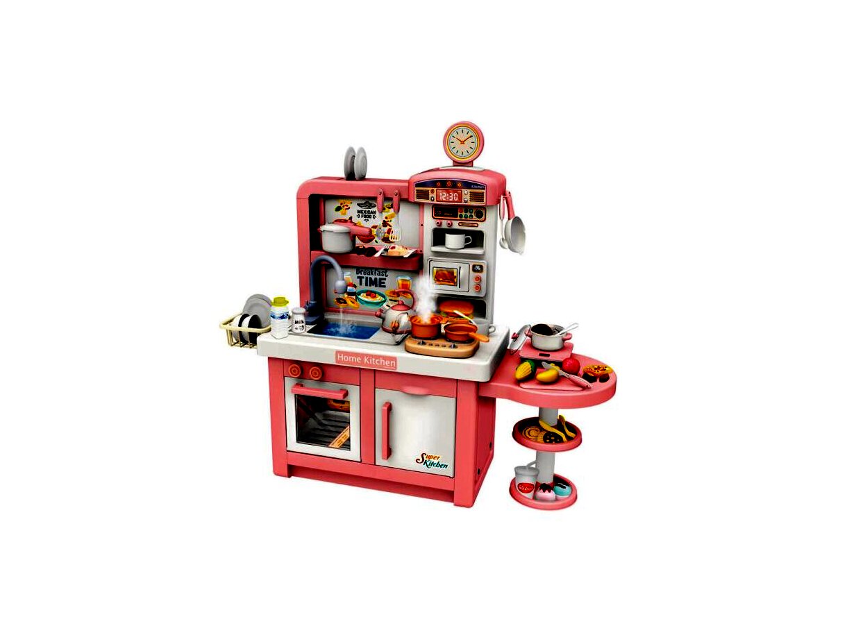 Minden apró séf álma egy jó felszerelt konyha, ebben a konyhában pedig minden megtalálható, ami szükséges a legfinomabb játékételek elkészítéséhez. A konyha számos lehetőséget és szuper funkciókat kínál a gyerekeknek, ráadásul egyszerre akár többen is odaférnek.A csomagban számos kiegészítő kiegészítő található - többek közt serpenyők, tányérok, evőeszközök, csészék, fűszertartók és sok más. A játék fejleszti a gyerekek kézügyességét és kreativitását, mindemellett a szett segítségével a kicsik megismerkedhetnek a konyhai eszközökkel és az alapvető élelmiszerekkel.