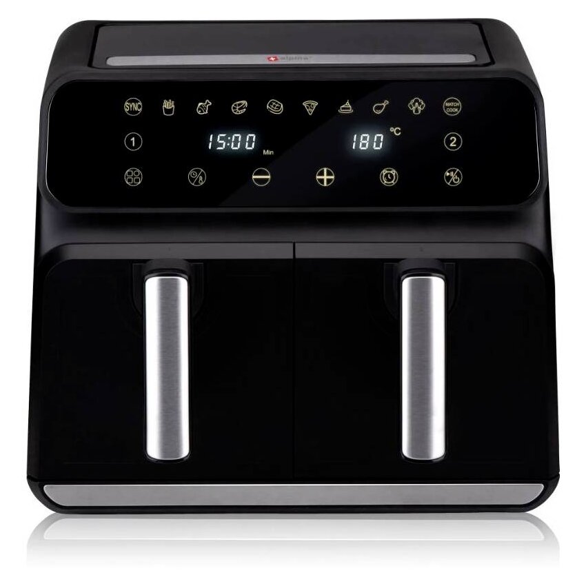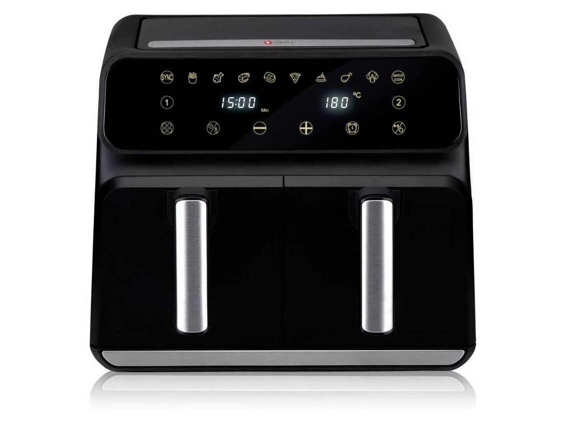 Az Alpina 24012 dupla forrólevegős sütő ideális választás mindazoknak, akik egészségesebben, gyorsabban és kényelmesebben szeretnének főzni. A két egymástól független sütőkamra (2 × 4 liter) lehetővé teszi, hogy egyszerre többféle ételt készítsen, akár különböző beállításokkal. Így időt és energiát takaríthat meg, miközben változatos fogásokat tálalhat.