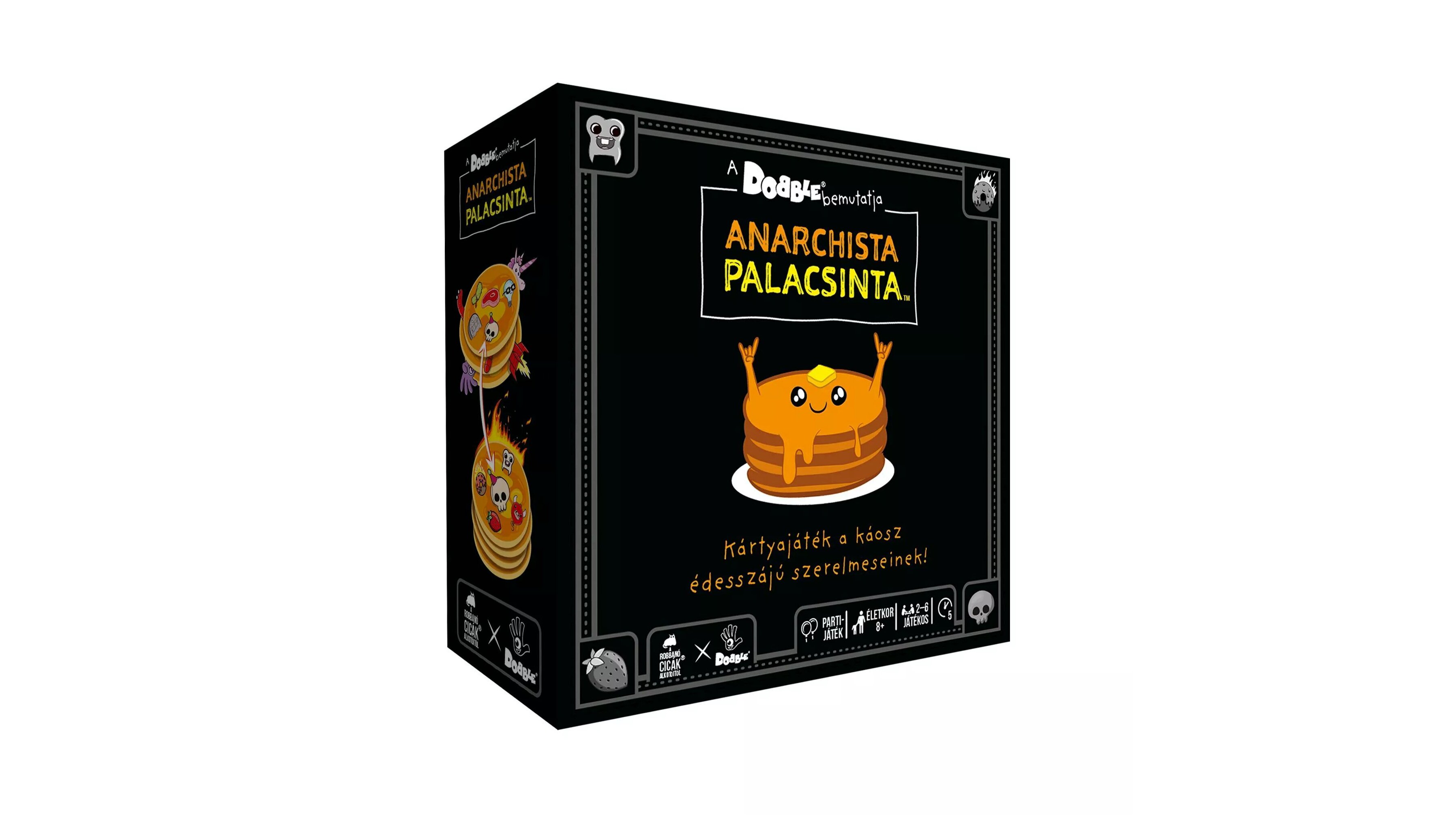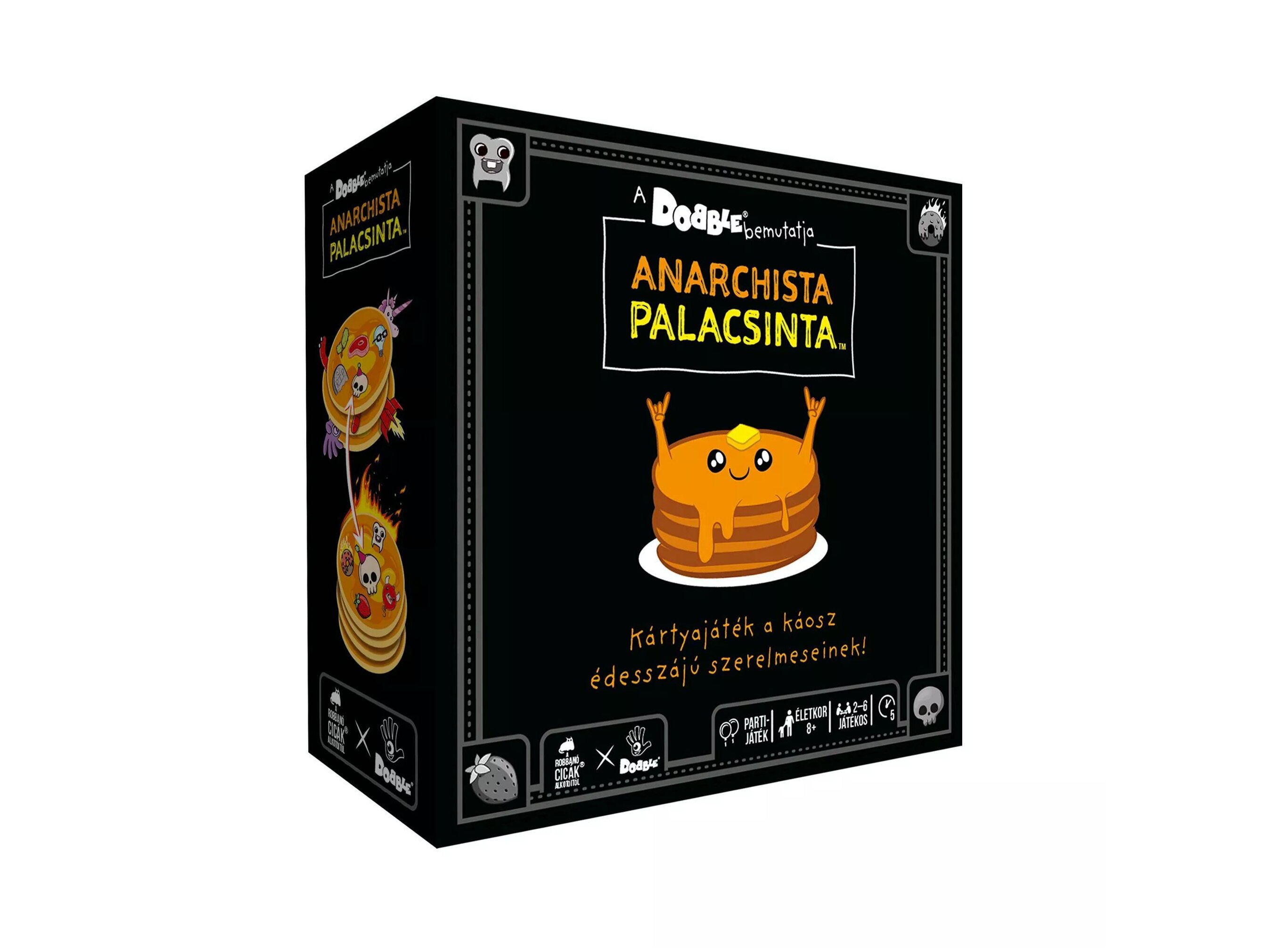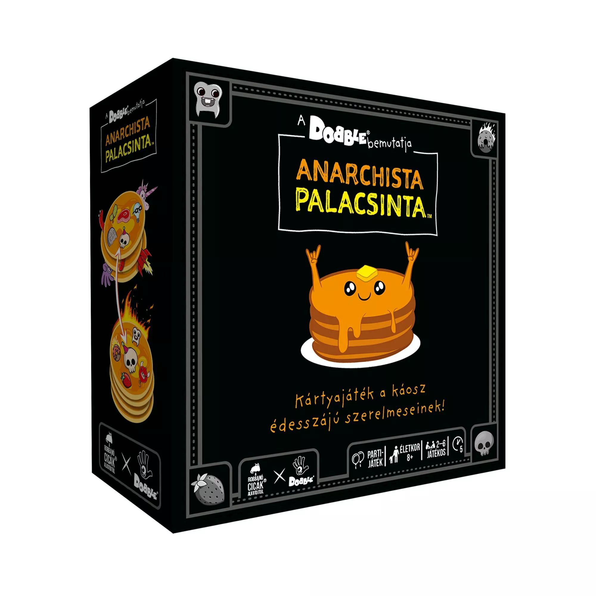 Az Anarchista palacsinta pörgős, zsebre vágható, kaotikus kártyajáték. A kártyákon vicces képecskék láthatók, és a játékosok feladata, hogy a többieknél gyorsabban megtalálják a közös képeket – úgy, hogy az összes kártya egyszerre van játékban! A koncentrációt és a reflexeket fejlesztő társasjáték.Átlagos játékidő: 5-10 perc