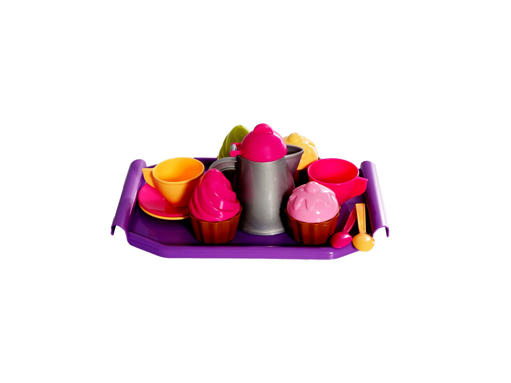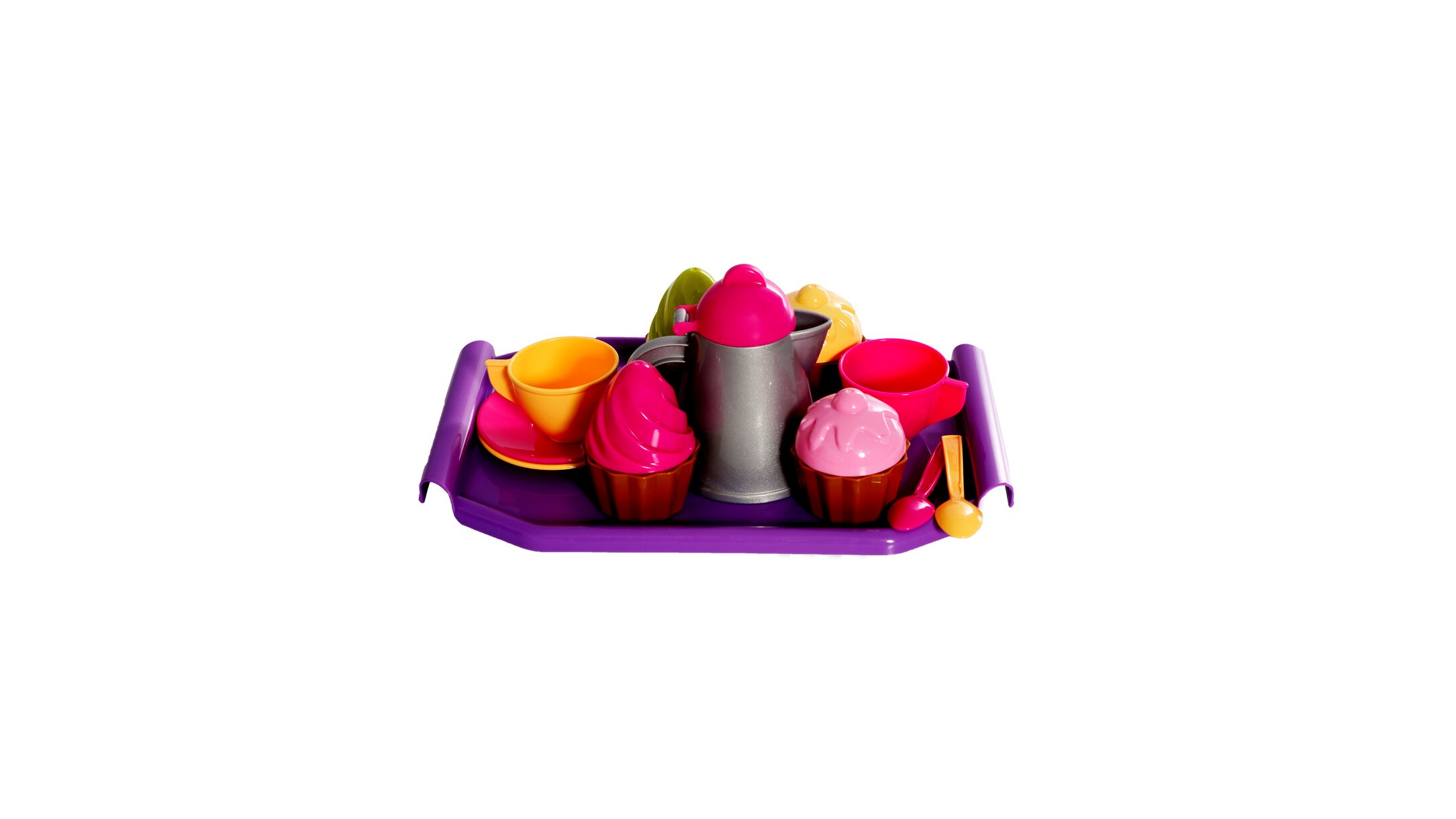 - A készlet tartalma: 1 db tálca, 1 db kanna, 2 db csésze alátéttel, 2 db kiskanál, és kétféle, összesen 4 db sütemény forma