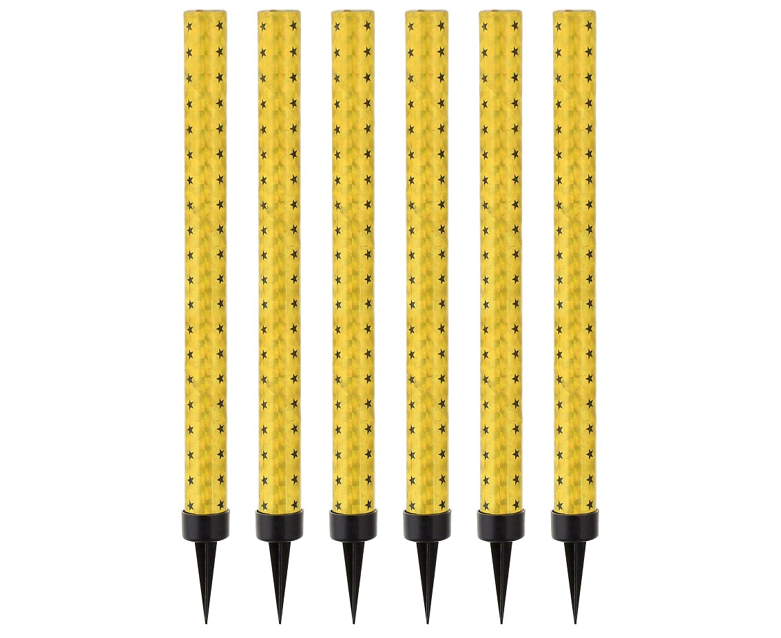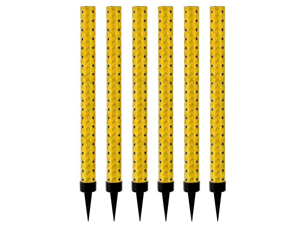 Ez a csomag 6 db, arany-fekete csillag mintás, 18 cm-es tűzijátékot tartalmaz.