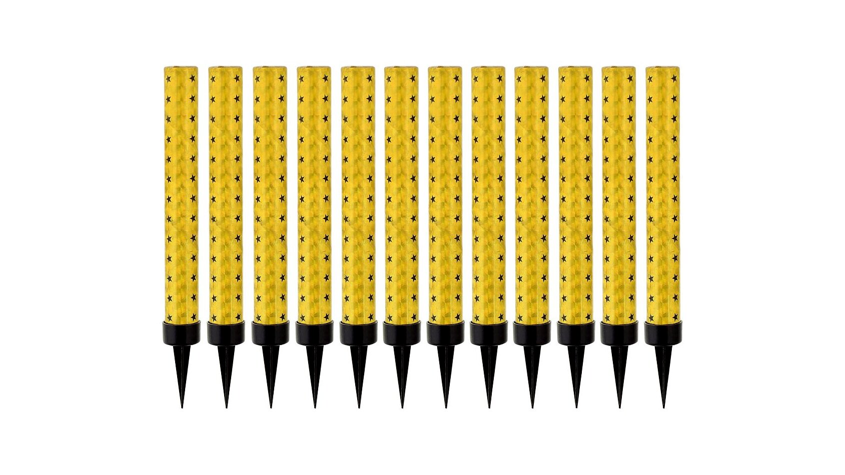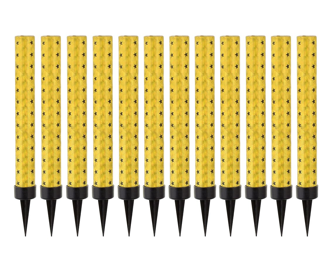 Ez a csomag 12 darab, arany színű 12 cm-es csillagszórót tartalmaz, hogy még fényesebb és ragyogóbb legyen az ünnep.