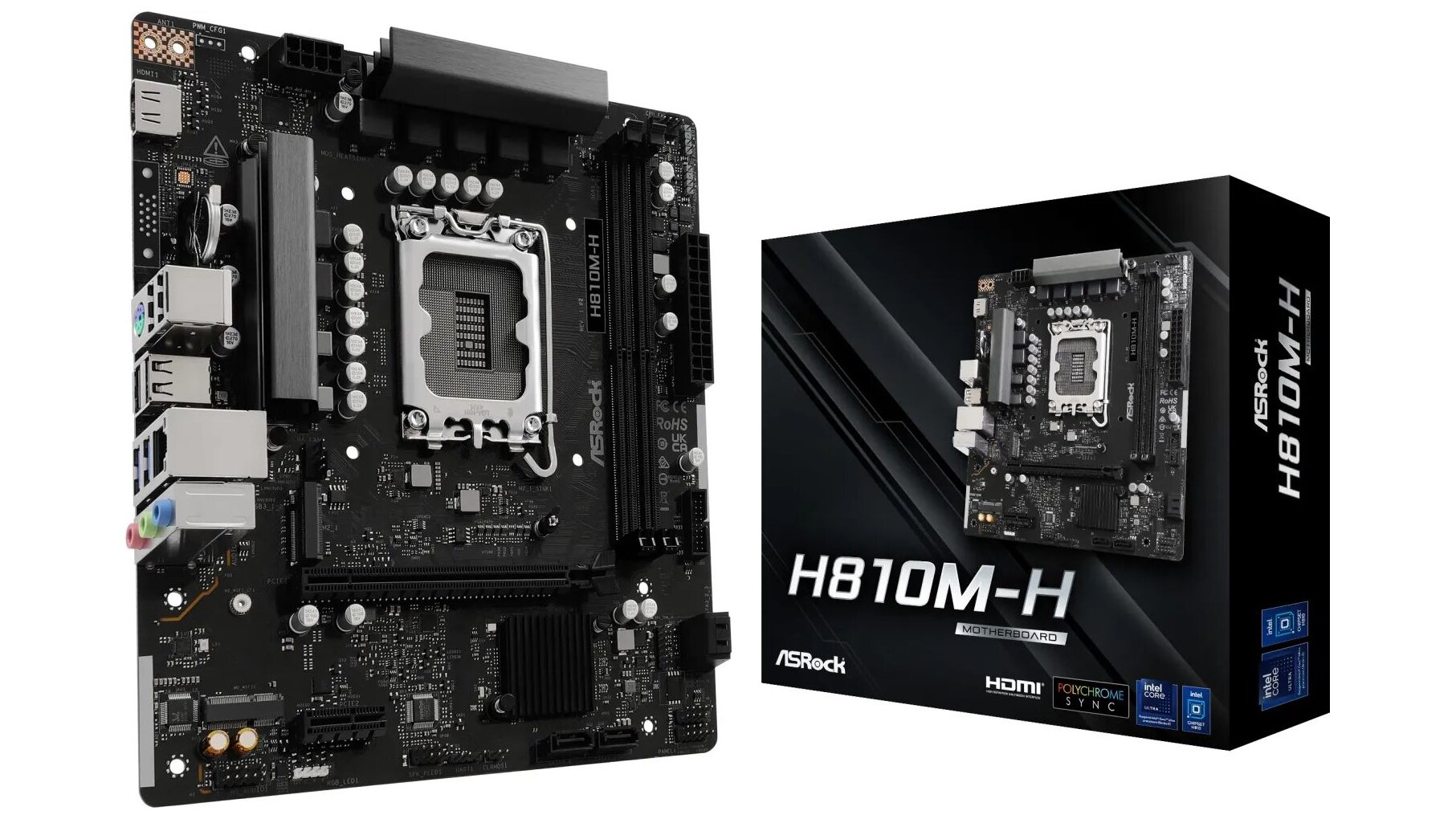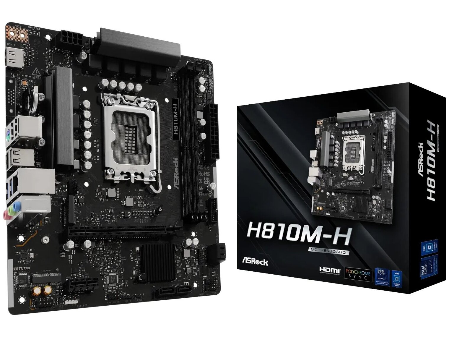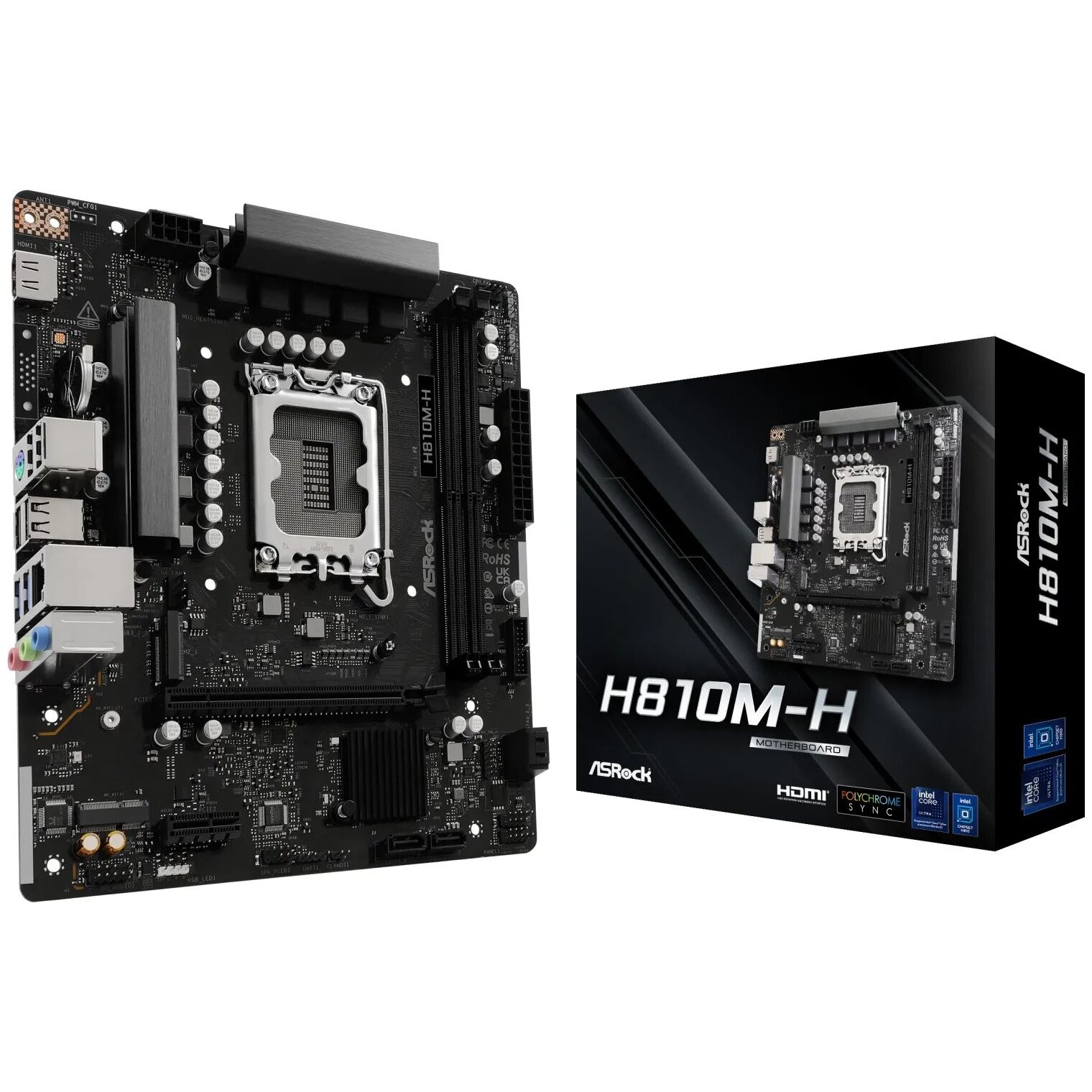 Az ASRock H810M-H egy Micro ATX formátumú alaplap Intel® H810 chipkészlettel, amely Intel® Core™ Ultra processzorokat (2. generáció, LGA1851) támogat. DDR5 memóriára, PCIe 4.0 bővíthetőségre és Gen4-es M.2 NVMe tárhelyre építve jó alapot ad egy kompakt, modern asztali PC összeállításához.