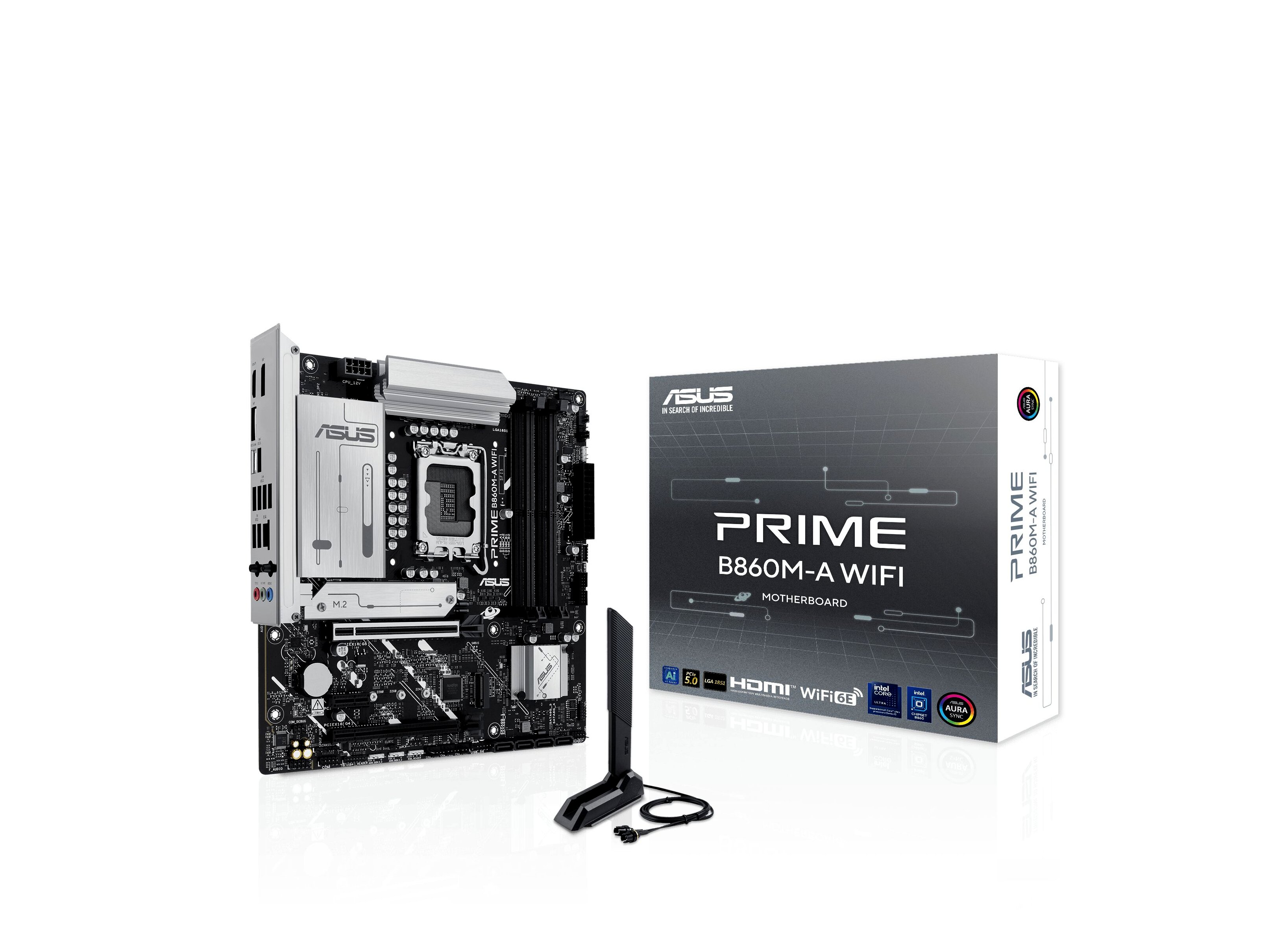 Intel, B860, LGA1851, 4db, 8666MHz, DDR5, PCI-E x16: 1db, PCIe x4: 1db, PCI-E x1: 1db, SATA3: 4db, M.2: 2db, 2,5Gb/s, IEEE 802.11ax (Wi-Fi 6E), Bluetooth, HDMI kimenet, DisplayPort, Thunderbolt előkészítés