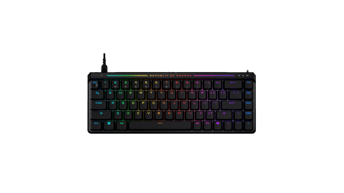 65%-os gamer billentyűzet • Kiosztás: US • Vezetékes kialakítás • Csatlakozás: USB 2.0 (Type-C to Type-A) • Mechanikus kapcsolók: ROG HFX Magnetic Switch • Beépített memória • Háttérvilágítás: Aura Sync RGB • Anti-Ghosting