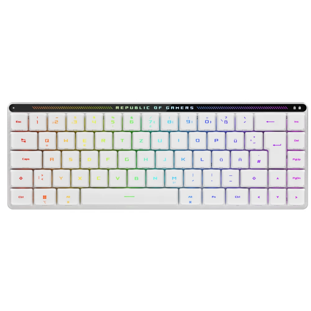 A ROG Falchion RX Low Profile 65%-os kompakt vezeték nélküli gamer billentyűzet alacsony profilú ROG RX optikai billentyűkkel, háromféle módú csatlakozás ROG SpeedNova vezeték nélküli technológiával, Omni Receiver, védőfedél, beépített szilikonhab csillapítás, interaktív érintőpanel, MacOS támogatás. Kompakt, vékony forma 65%-os billentyűzet egy 60%-os méretű keretben, 26,5 mm-es vastagság ügyesen elhelyezett nyilakkal és navigációs gombokkal.
