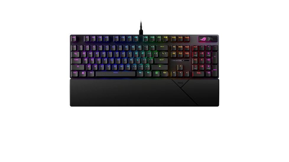 ROG NX Snow & STORM mechanikus kapcsolók: Gyárilag kent NX Snow lineáris kapcsolók és ROG NX Storm kattogós kapcsolók peremes szárral a billentyűleütések stabilabbá tételéhez, illetve akusztikai szempontok szerint hangolva.