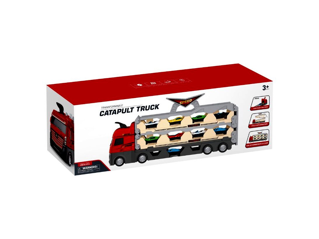 - Tartalom: 1 db 45,4 cm-es kamion, 6 db fém kisautó (kb. 7 x 3 cm)