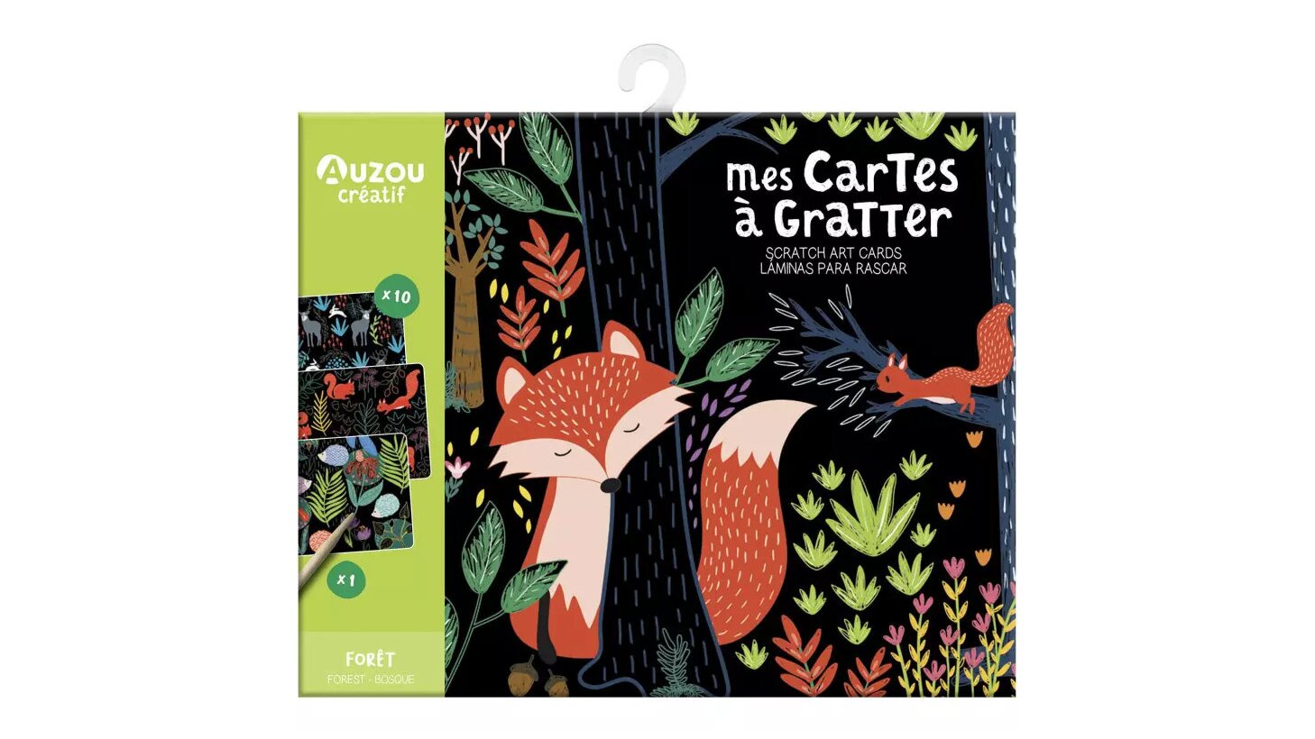Az Auzou erdei állatok tematikájú karckép szettjének segítségével a kis művészek megismerkedhetnek a különleges képkarc technikával. A körvonalak adottak, kiszínezve viszont a különböző erdei állatkákat (pl. róka, bagoly, süni stb.) ábrázoló képek kibontakoznak, és teljes, káprázatos valójukban mutatják meg magukat; mindössze le kell kaparni - az útmutatóban leírtak szerint - a csomagban található karcolóeszközzel a fekete fedőréteget. A készletben 10 karckép alap kapott helyet.Az elkészült képek a gyerekszoba különlegesen szép díszeivé válhatnak, de ajándéknak is tökéletesek. A játék remekül fejleszti a gyerekek kreativitását, kézügyességét és a finommotoros készségeket.