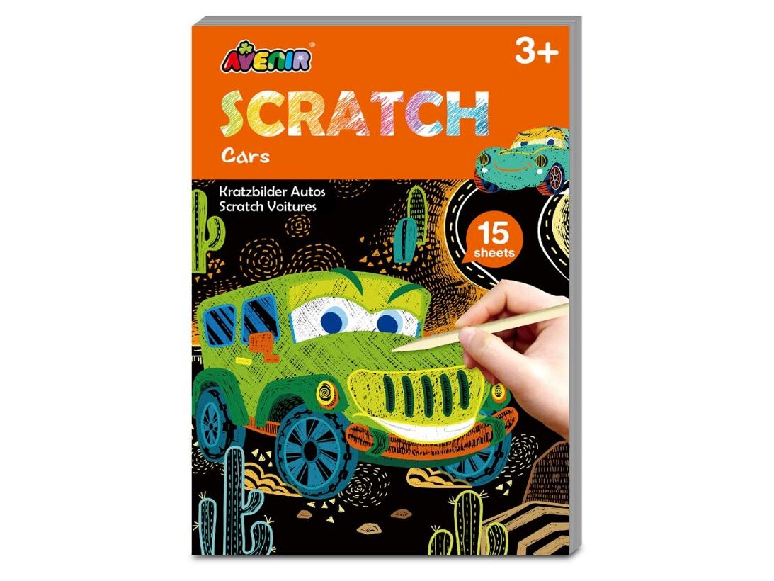 Az Avenir autók tematikájú mini karckép könyvének segítségével a kis művészek megismerkedhetnek a különleges képkarc technikával. A körvonalak adottak, kiszínezve viszont az autós jeleneteket ábrázoló képek kibontakoznak, és teljes, káprázatos valójukban mutatják meg magukat; mindössze le kell kaparni - az útmutatóban leírtak szerint - a csomagban található karcolóeszközzel a matt fekete fedőréteget. A könyvben 13 illusztrált és 2 üres kaparós oldal kapott helyet, így a gyerekek saját ötleteiket is megvalósíthatják.
