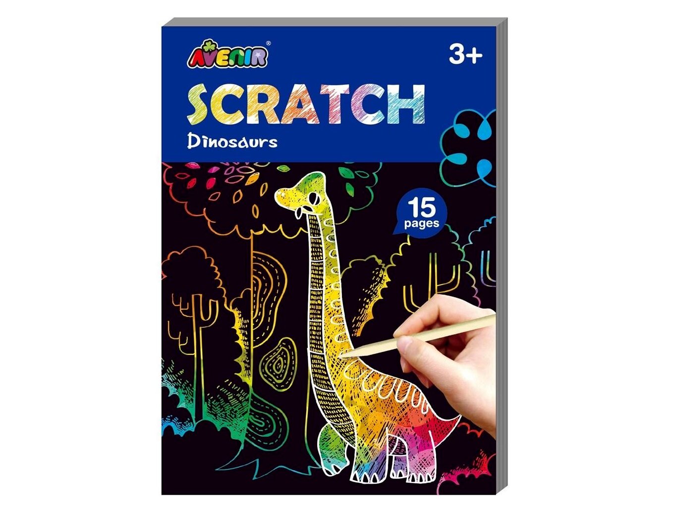 Az Avenir dinók tematikájú mini karckép könyvének segítségével a kis művészek megismerkedhetnek a különleges képkarc technikával. A körvonalak adottak, kiszínezve viszont az őshüllőket ábrázoló képek kibontakoznak, és teljes, káprázatos valójukban mutatják meg magukat; mindössze le kell kaparni - az útmutatóban leírtak szerint - a csomagban található karcolóeszközzel a matt fekete fedőréteget. A könyvben 10 illusztrált és 5 üres kaparós oldal kapott helyet, így a gyerekek saját ötleteiket is megvalósíthatják.