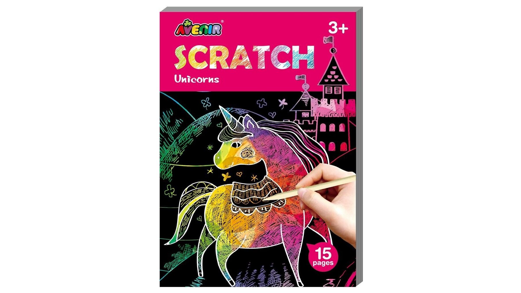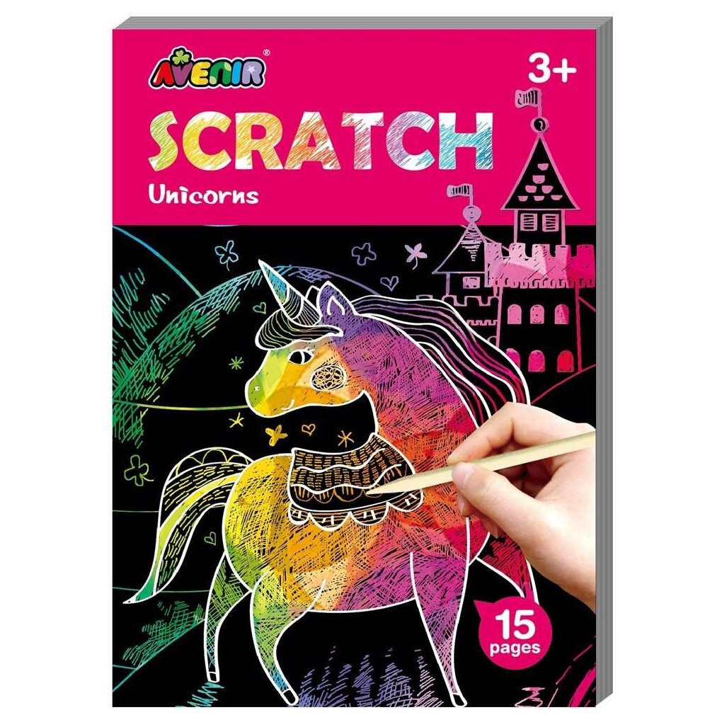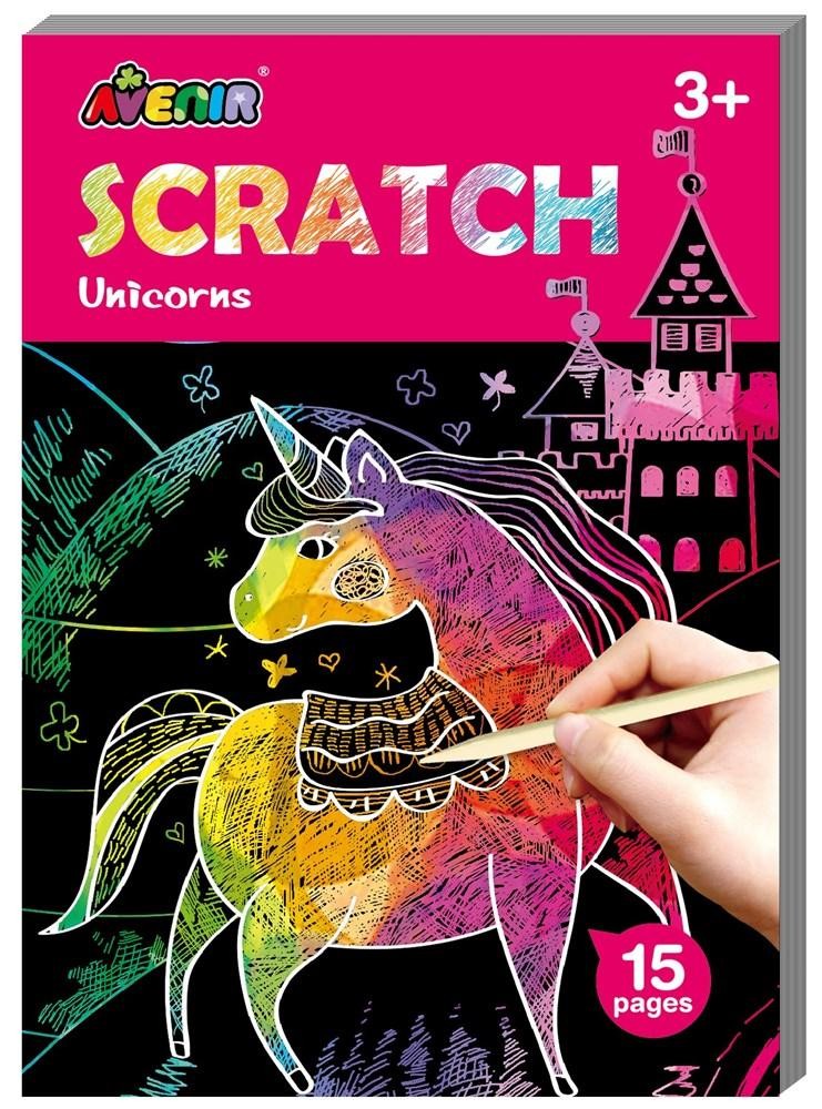 Az Avenir unikornis tematikájú mini karckép könyvének segítségével a kis művészek megismerkedhetnek a különleges képkarc technikával. A körvonalak adottak, kiszínezve viszont a varázslatos jeleneteket ábrázoló képek kibontakoznak, és teljes, káprázatos valójukban mutatják meg magukat; mindössze le kell kaparni - az útmutatóban leírtak szerint - a csomagban található karcolóeszközzel a matt fekete fedőréteget. A könyvben 10 illusztrált és 5 üres kaparós oldal kapott helyet, így a gyerekek saját ötleteiket is megvalósíthatják.