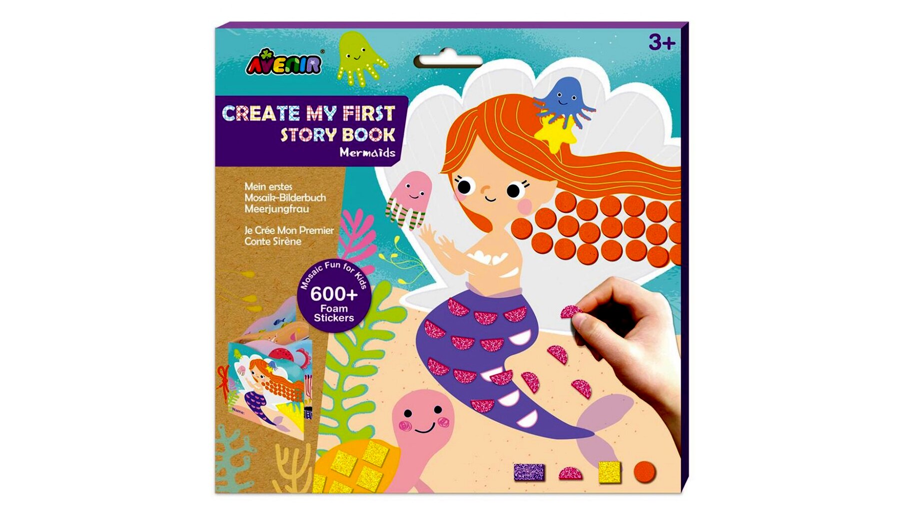 Az Avenir sellők tematikájú mozaikkép készítő szettjével a kis művészpalánták elkészíthetik legelső képeskönyvüket, méghozzá nem is akárhogy: mozaik technikával. A készletben több, mint 600 darab polifoamból készült, különböző formájú, csillogó mozaikmatrica kapott helyet, amelyeket mindössze rá kell ragasztani a lapokon a megadott helyekre, és máris teljessé válnak a tenger mélyén játszódó jelenetek. A mellékelt madzag segítségével a gyerekek könyvvé fűzhetik össze a képeket, így bármikor lapozgathatják őket, elmesélve a sellők legújabb kalandjait.
