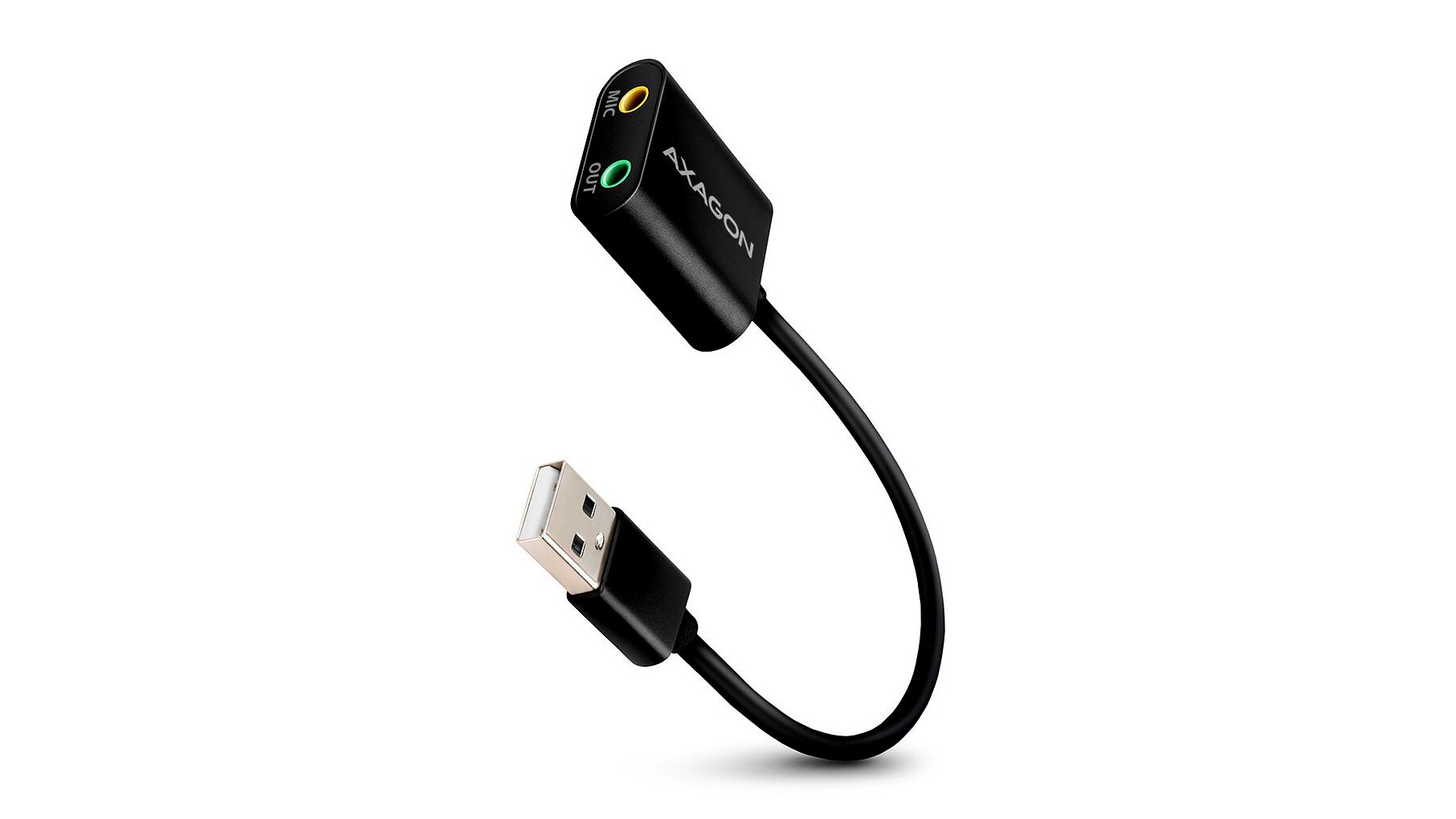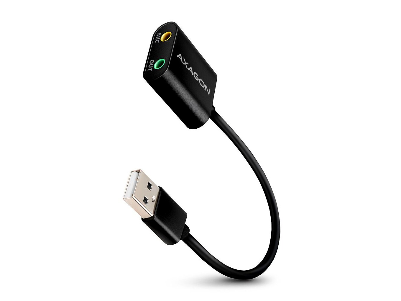Az AXAGON ADA-12 egy külső USB hangkártya, amellyel gyorsan pótolható a hiányzó vagy meghibásodott fejhallgató-kimenet és mikrofonbemenet PC-n vagy notebookon. USB-portra csatlakoztatva azonnal használható fejhallgatóhoz/aktív hangszóróhoz és mikrofonhoz, külön tápegység nélkül.