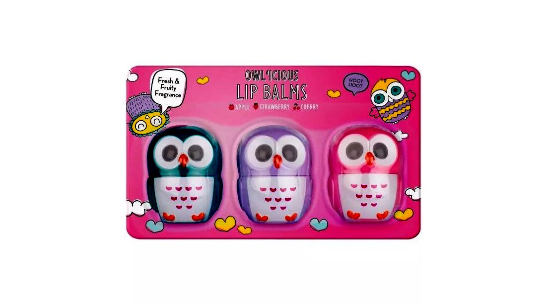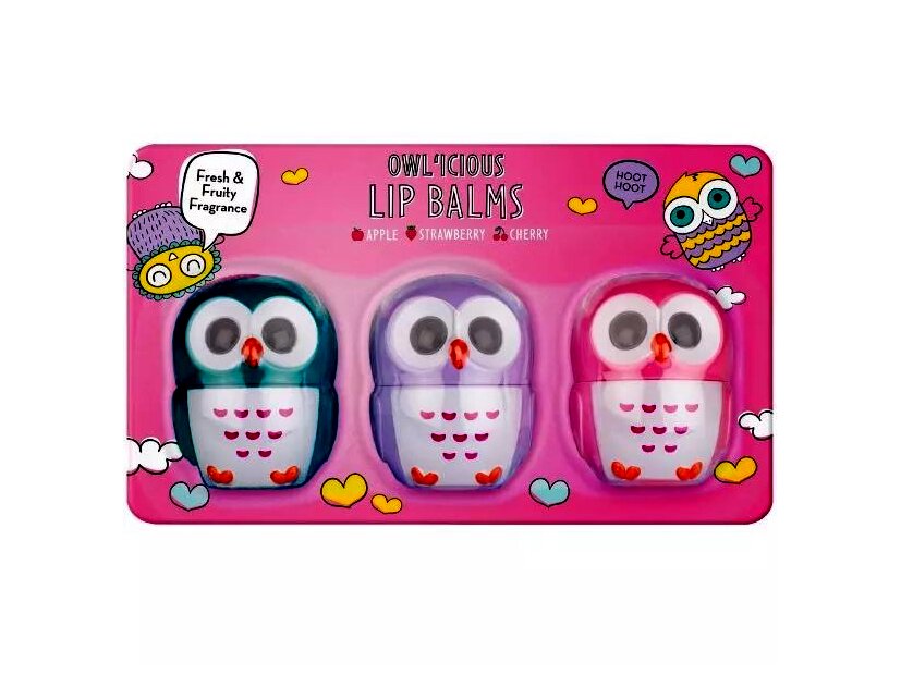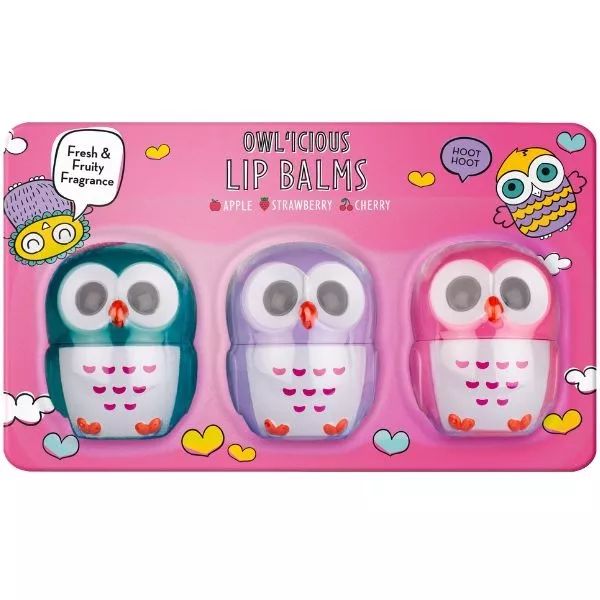 Na de miért is ne lehetne mindezt stílusosan? Ebben a szettben 3 darab különböző, bagoly formájú tégelyben 3 különböző ízű ajakbalzsam rejlik: eper, alma és cseresznye, hogy mindenki megtalálja a kedvencét.