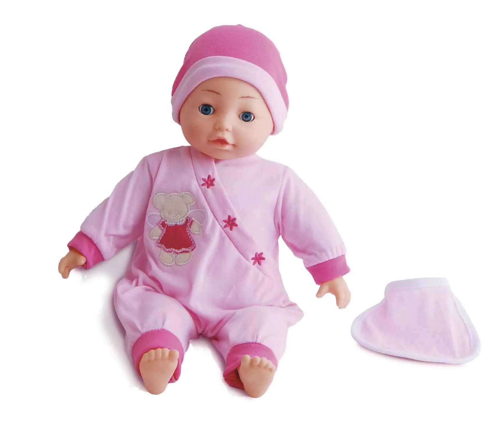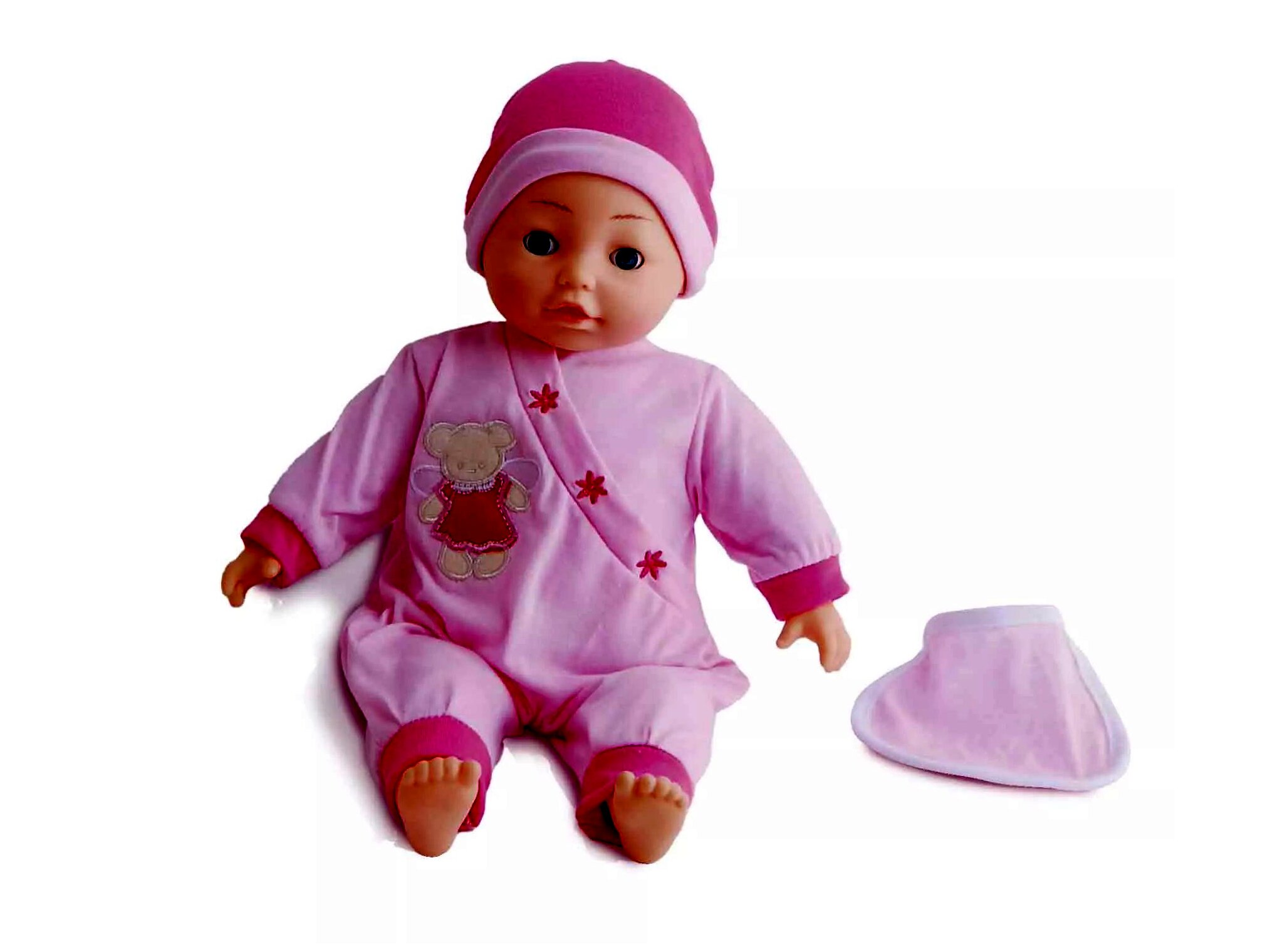 Ezzel az aranyos, rózsaszín overált viselő babával a kislányok kipróbálhatják milyen anyukának lenni. A kb. 40 cm-es baba sapkát visel, hogy ha kültéri játékra kerülne a sor, ne fázzon meg a buksija. Arca aranyos kidolgozású, pólóján egy cuki maci látható. A babához egy előke is jár, így biztosan nem történnek majd étkezési balesetek. A baba 50 különböző magyar szót tud kimondani.A játék fejleszti a fantáziát és a képzelőerőt. A „kis anyukák” babájuk gondozásával a felnőttek világát utánozhatják szerepjáték által, így sokat tanulnak a felelősségvállalásról, a szeretetről, önállóságról és a gondoskodásról.