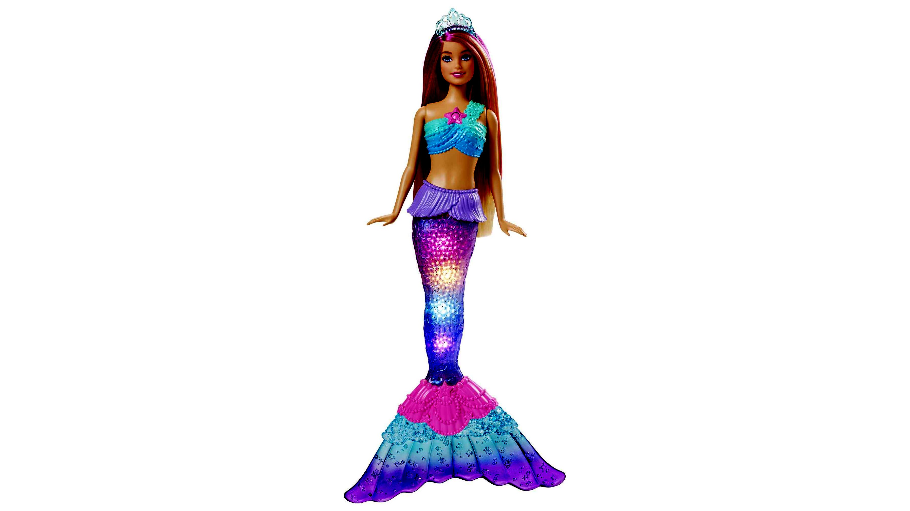 A Barbie Tündöklő Szivárványsellő nagyszerű ajándék gyerekeknek. A mesés vízi történeteknek csak a képzelet szabhat határt. A baba nem áll meg és nem úszik magában.