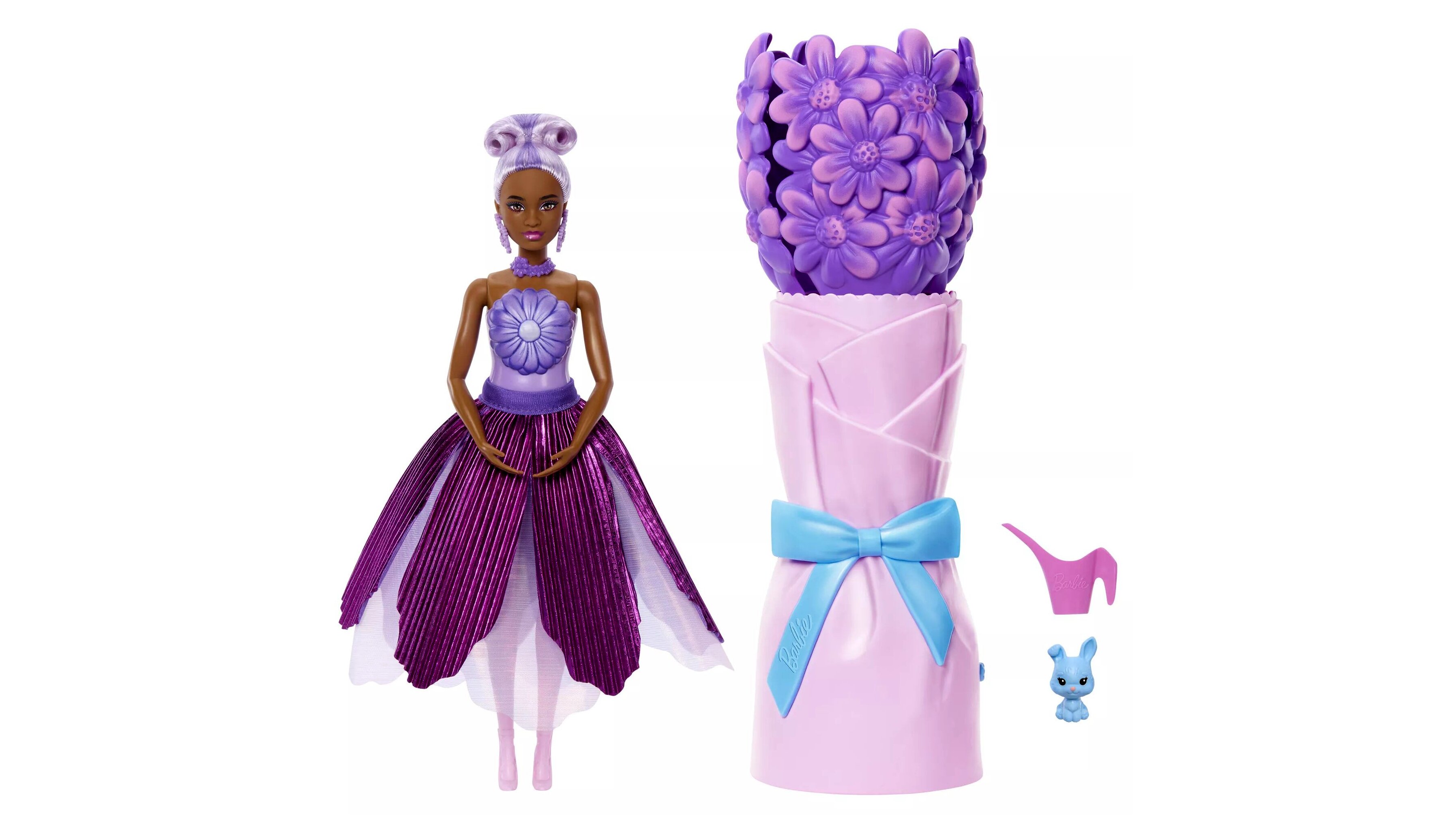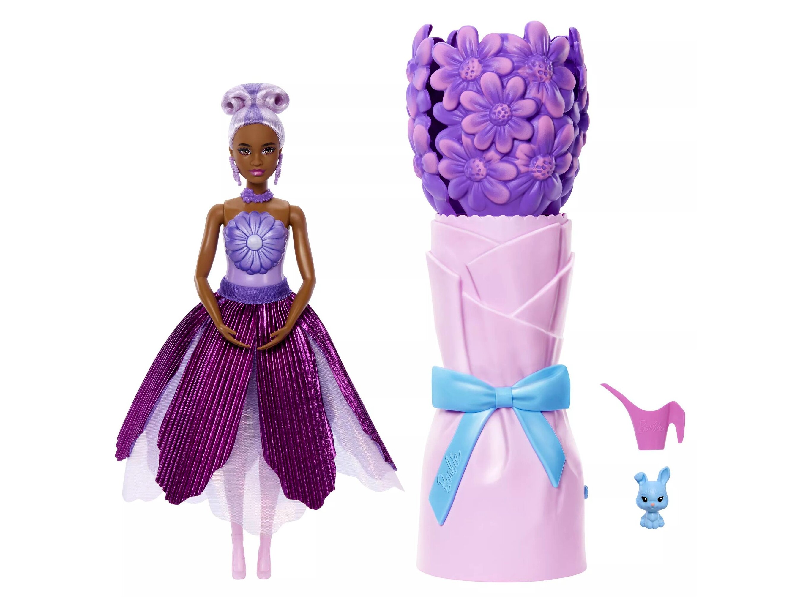 A Barbie Reveal Virágvarázs meglepetés készlet egy csokor formájú csomagolásba rejtett, több lépéses felfedező játék: a szirmok alatt meglepetés tasakok várnak, a mellékelt öntözőkannával „locsolva” pedig előbukkan a baba. A csokor hideg és meleg víz hatására színváltó élményt is ad, a baba megjelenése pedig kiegészítőkkel alakítható.