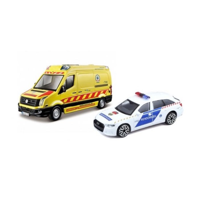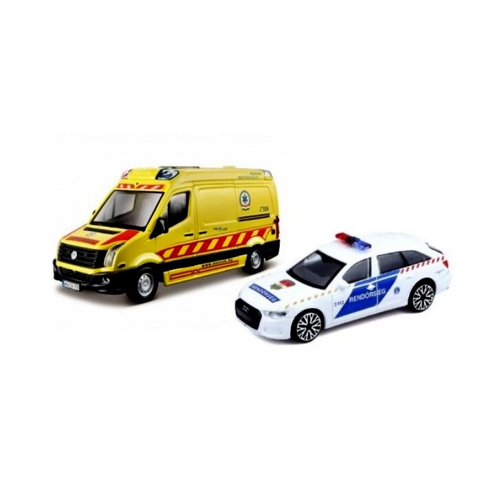 Bburago Volkswagen Crafter és Audi A6, mentőautó és járőrkocsi
