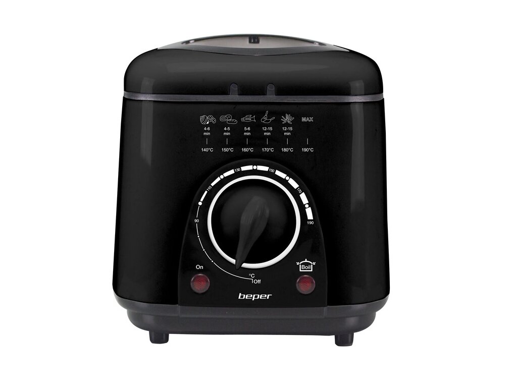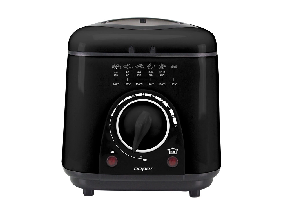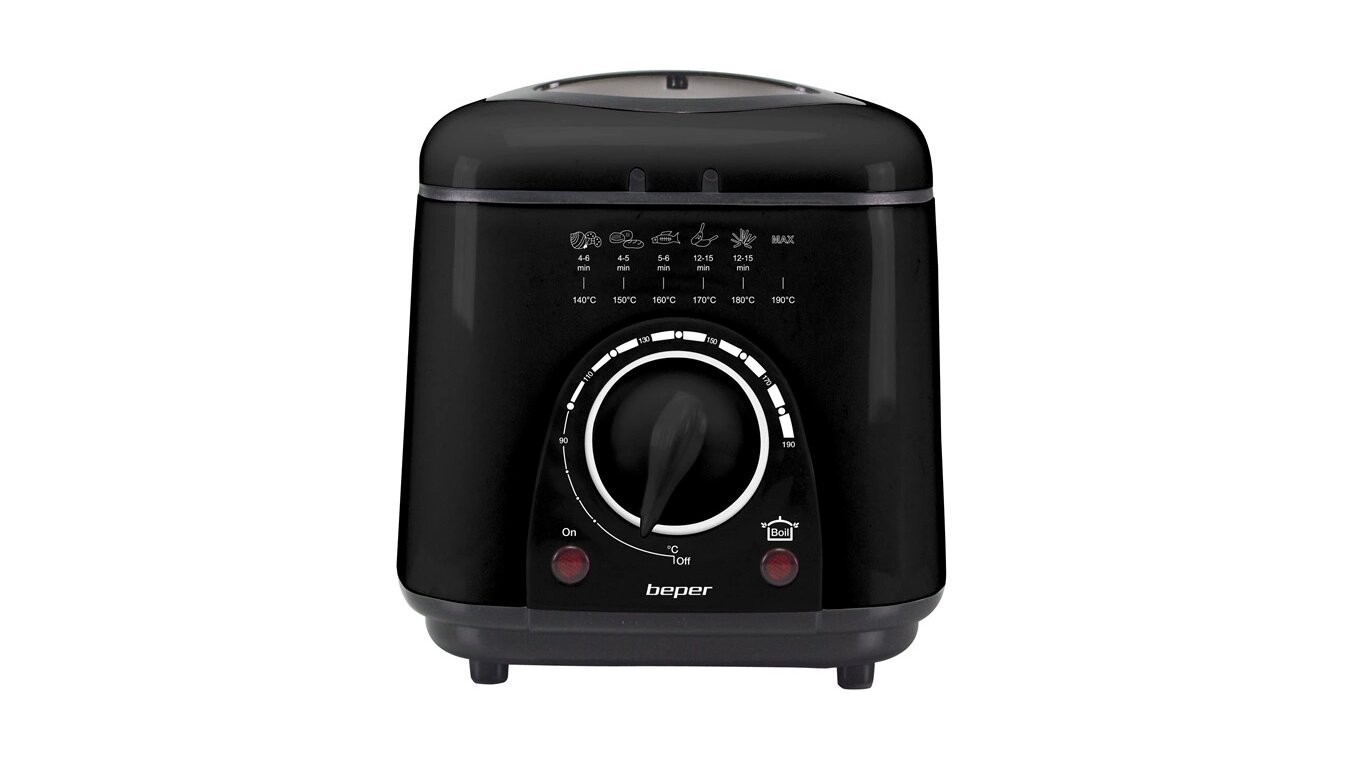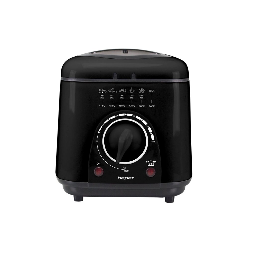 A Beper P101FRI100 egy kompakt, elektromos olajsütő 1 literes kapacitással, amely kisebb adagok gyors és egyszerű bő olajban sütésére készült. Tapadásmentes belső edénnyel, állítható hőfokszabályzással és kivehető sütőkosárral segíti a kényelmes használatot.