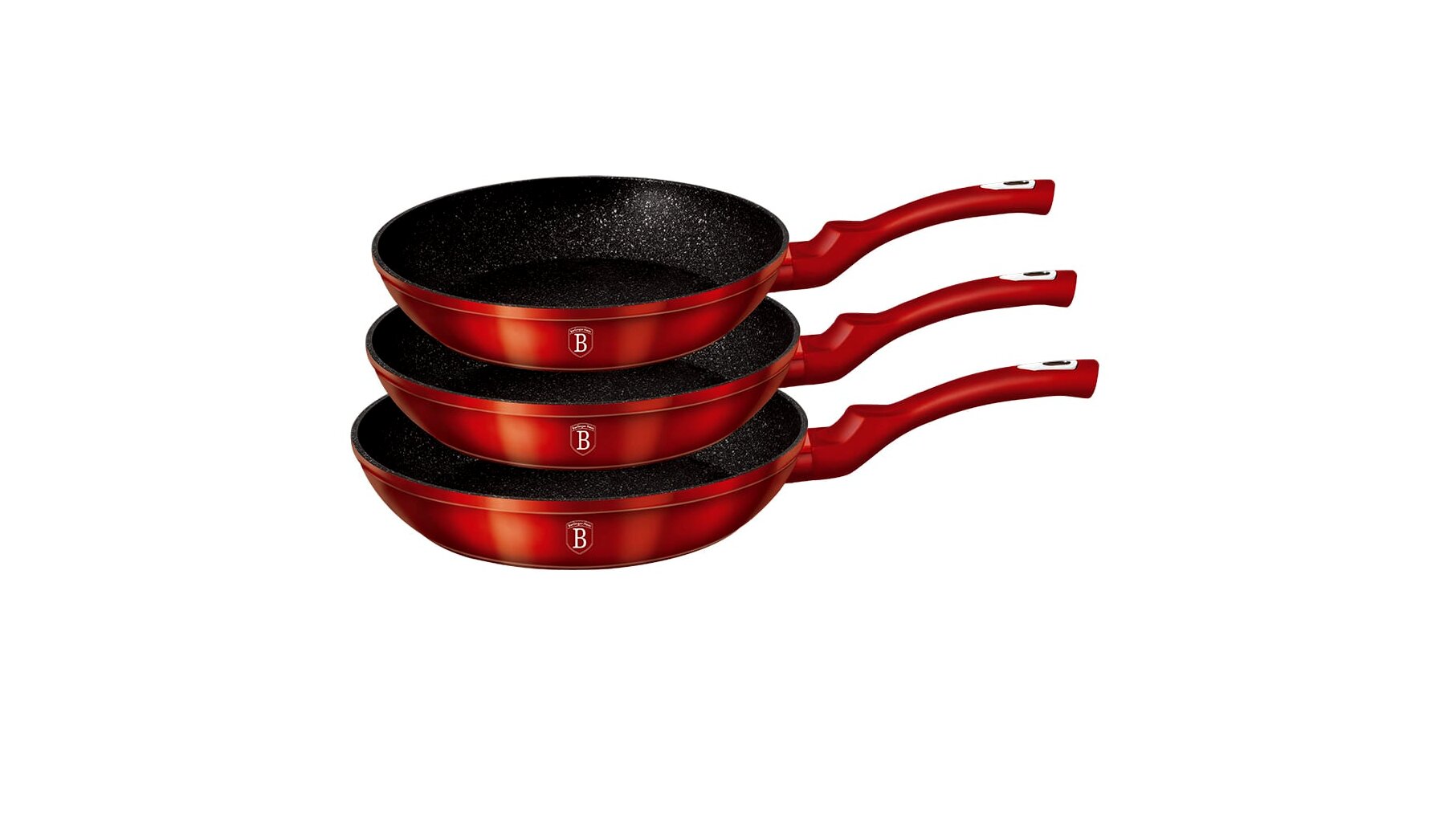 A Berlinger Haus BH/1288 Burgundy Metallic Line 3 részes serpenyőszett jó választás lehet azoknak, akik több méretű, tapadásmentes bevonatú serpenyőt keresnek mindennapi használatra, indukciós kompatibilitással és kényelmes fogással.