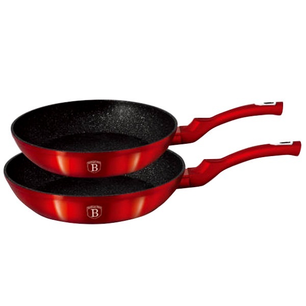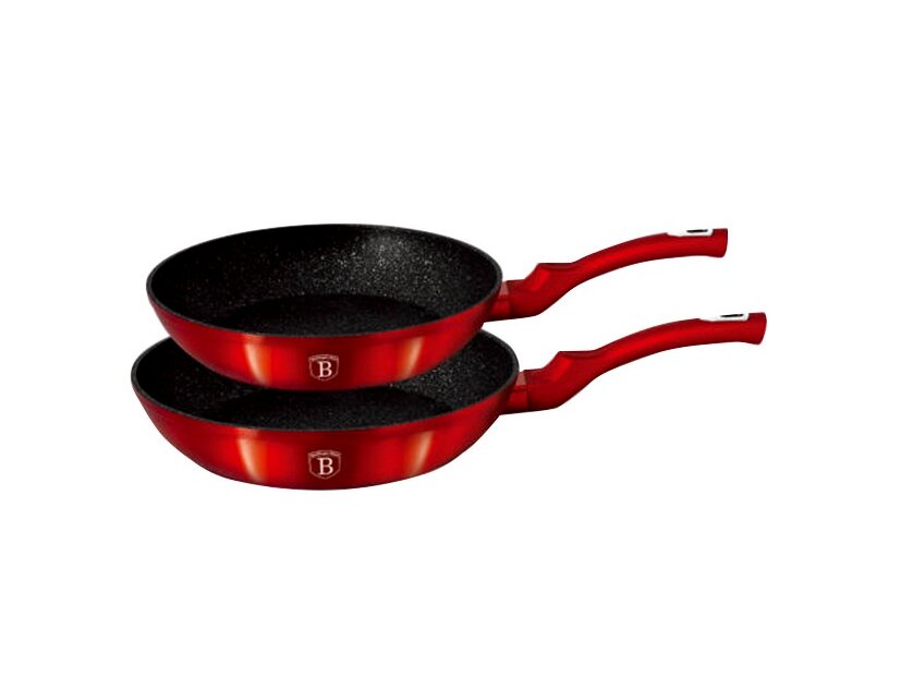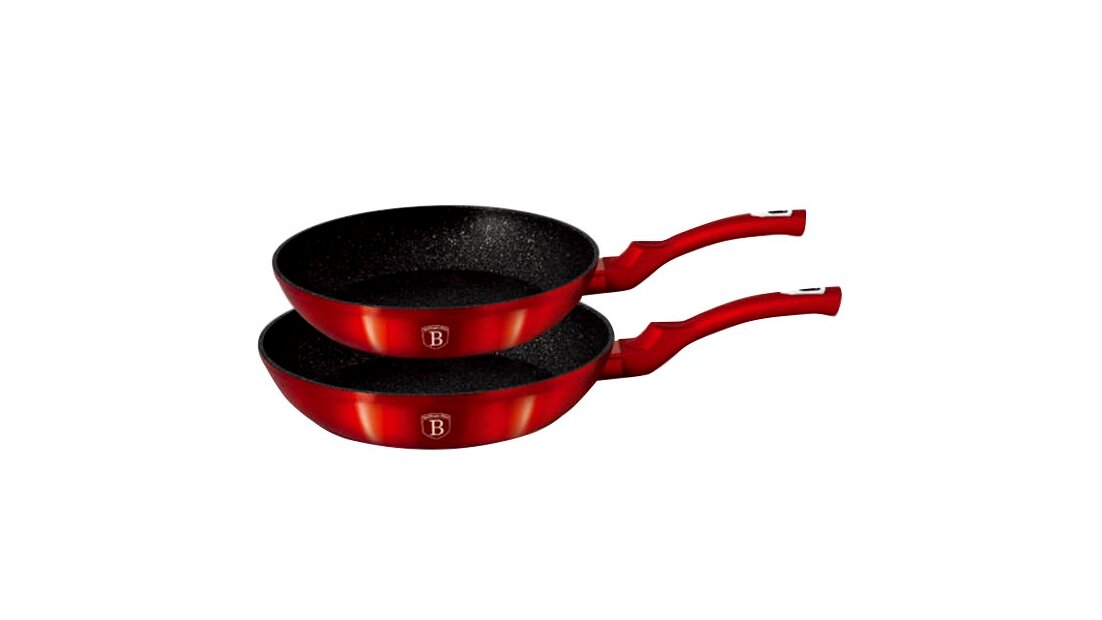 A Berlinger Haus BH/1612 Burgundy Metallic Line serpenyőszett két, mindennapi használatra ideális méretű serpenyőt tartalmaz. Kovácsolt alumíniumból készültek, 3 rétegű márvány hatású tapadásmentes bevonattal és turbo indukciós aljjal, így többféle főzőlapon is hatékonyan használhatók.