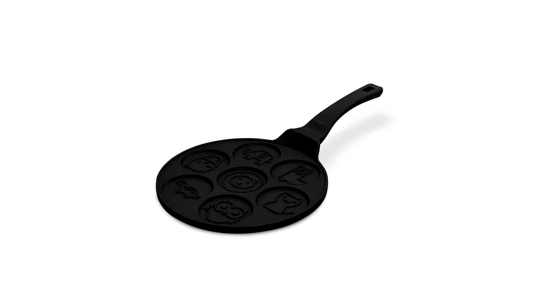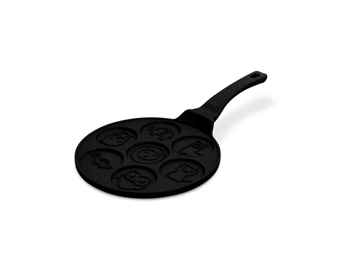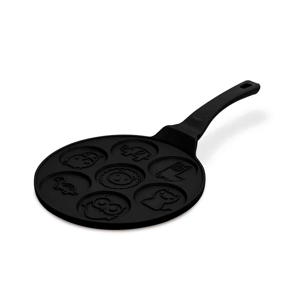 A serpenyő 7 különálló, állat mintás mélyedéssel készült, így egy körben több kisebb amerikai palacsintát süthet, ami különösen praktikus reggelikhez és családi adagokhoz.