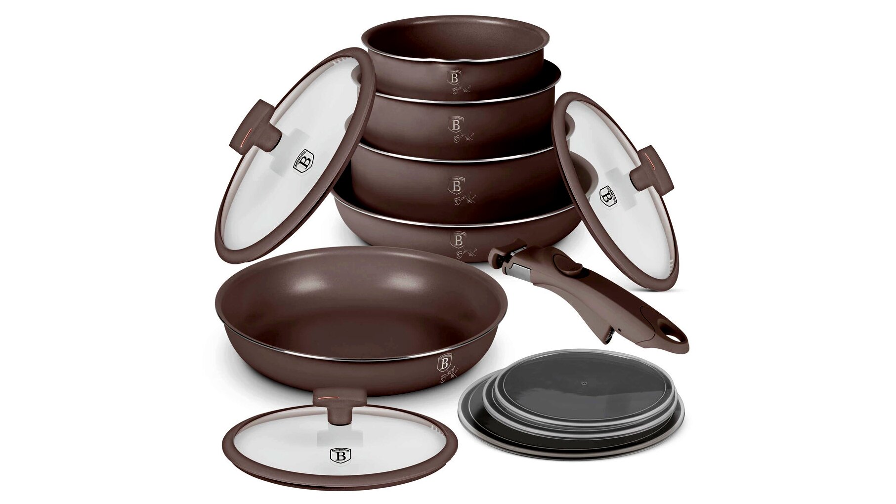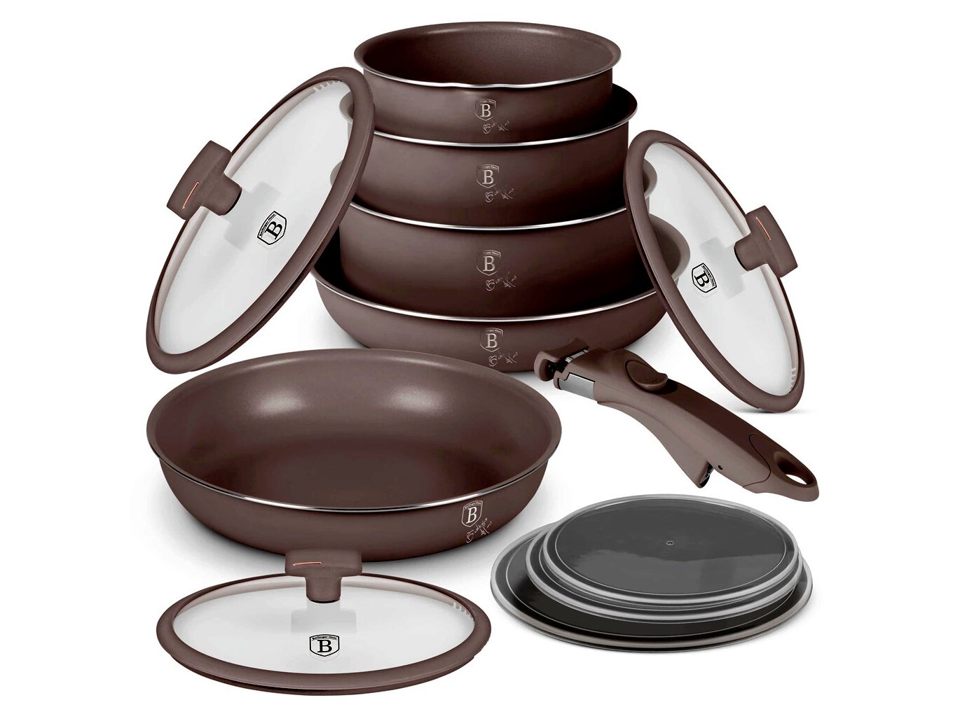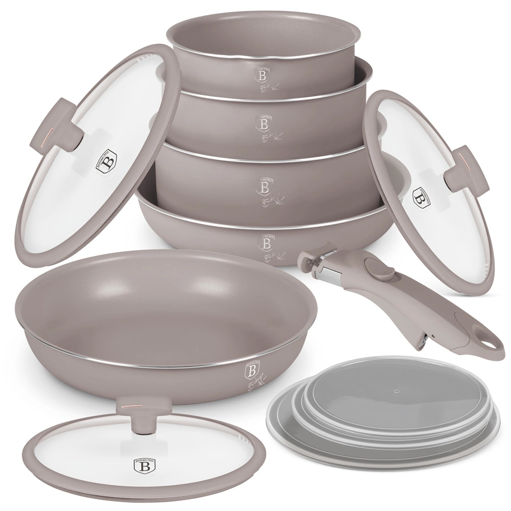 Berlinger Haus BH/8251 Taupe Collection serpenyő szett levehető nyéllel, 12 részes