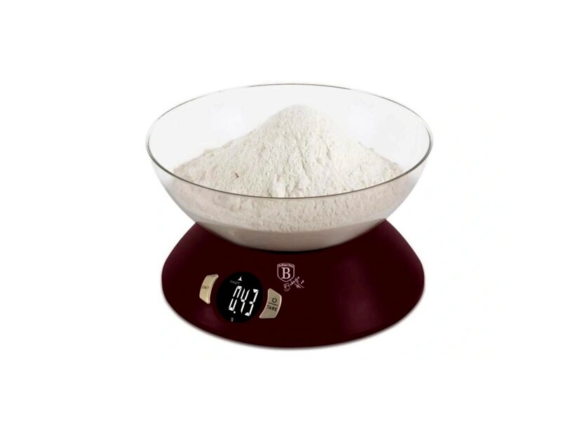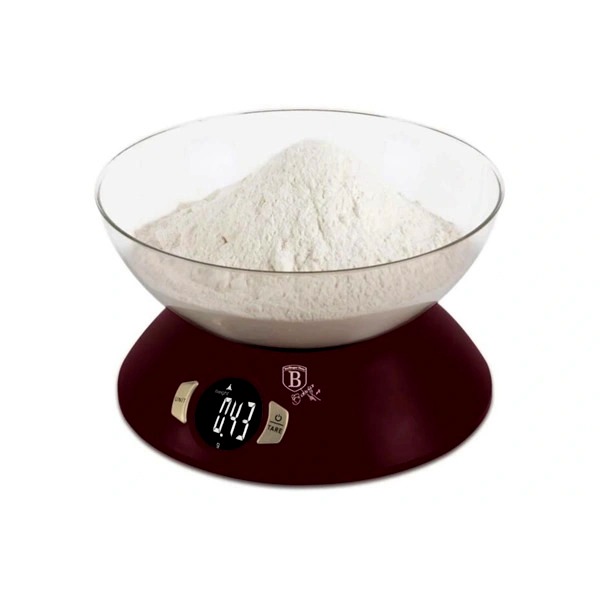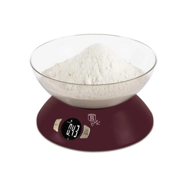 A matt bordó szín elegáns megjelenést kölcsönöz a mérlegnek, amely bármilyen konyhai dekorációval harmonizál.