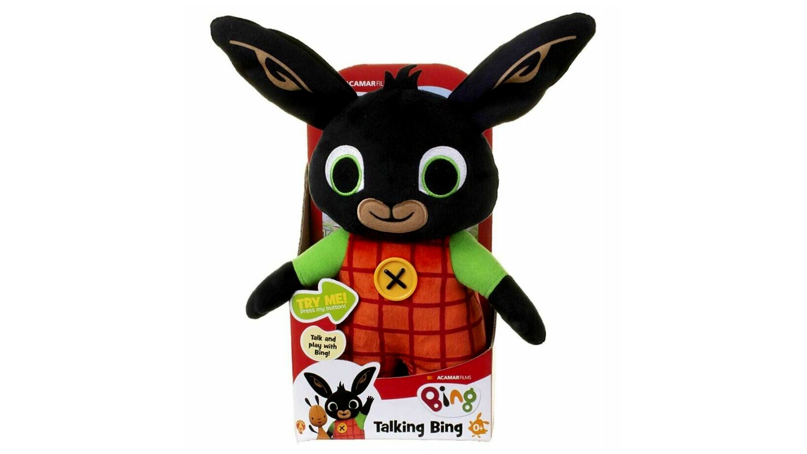 Beszélgess és játssz Bing nyuszival, akivel most már te is szuper kalandokba keveredhetsz! A puha, ölelni való plüss 15 mókás kifejezést tud mondani, amelyet a meséből már jól ismerhetsz. Hogy Bing beszélni kezdjen csak nyomd meg a pocakján lévő gombot. Bing a szokásos piros overálját viseli. A plüss arcvonásai hímzettek, a hasán lévő gomb pedig műanyagból készült.