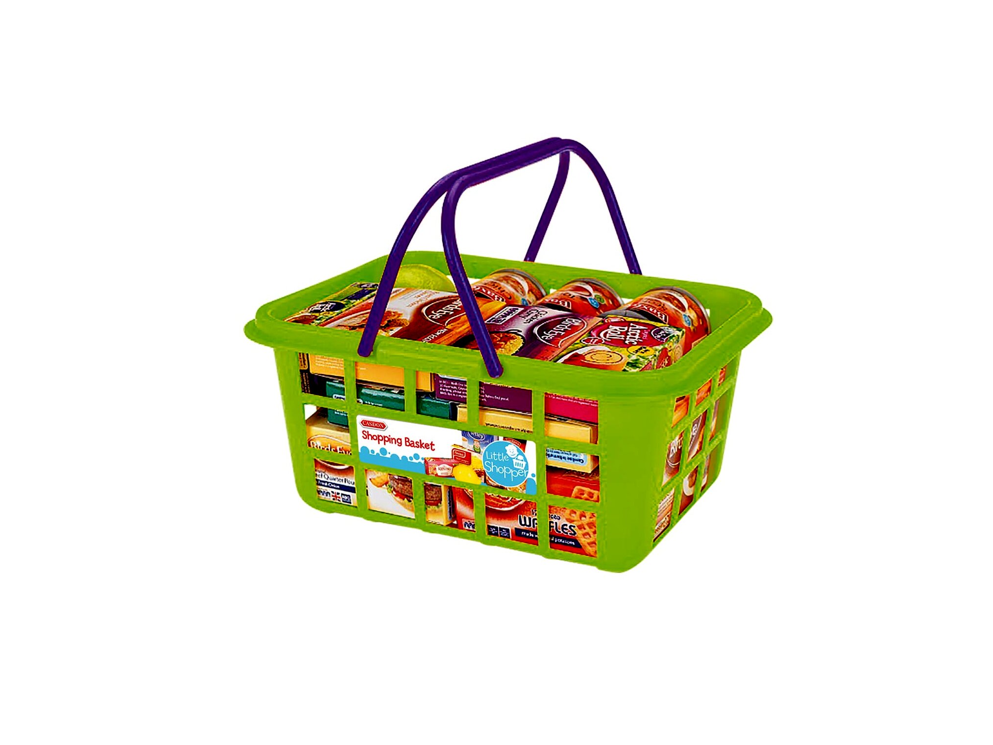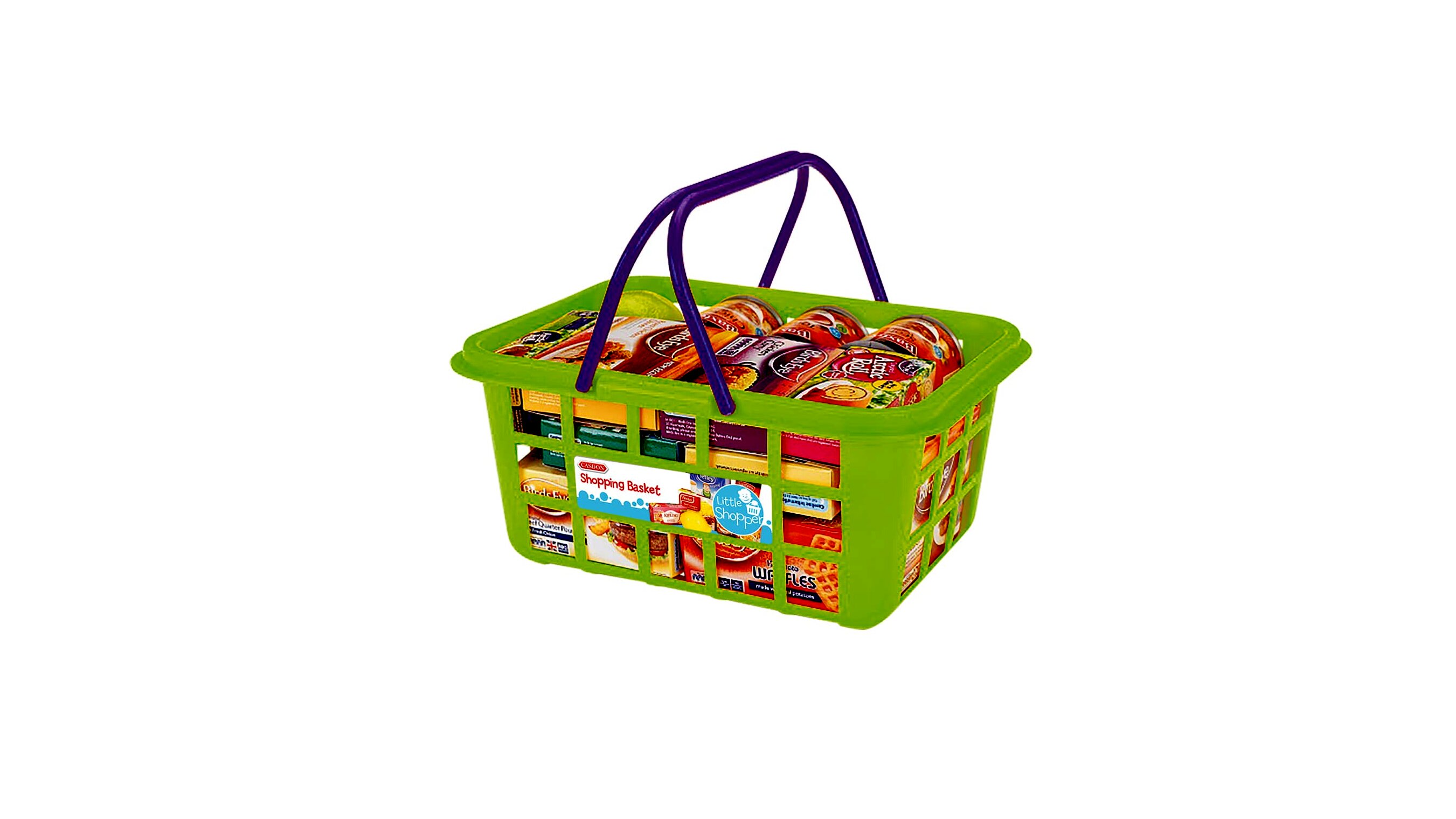 Csomag tartalma: Műanyag bevásárlókosár, 20 db termék