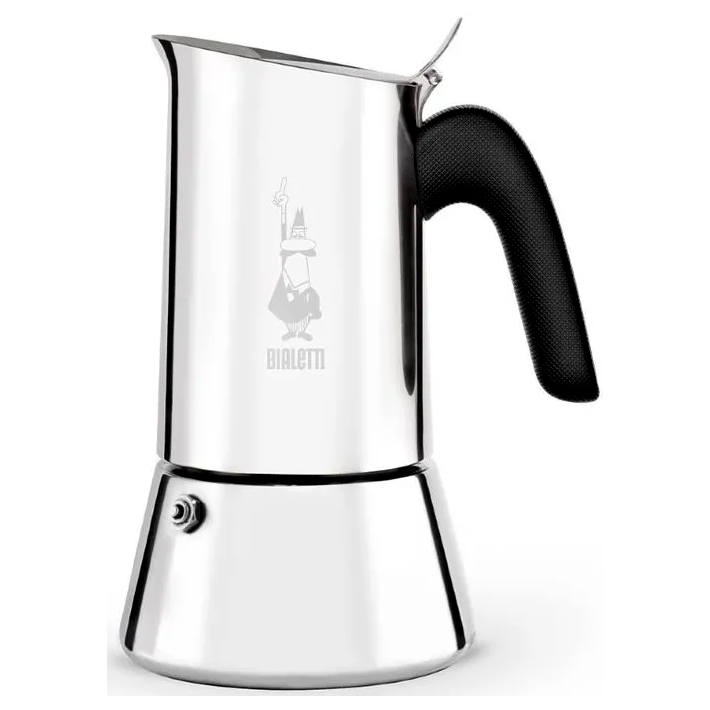 A Bialetti Venus rozsdamentes acél kotyogós kávéfőző 2 adag kávé elkészítéséhez. A klasszikus mokkafőző módszerrel, tűzhelyen melegítve készít kávét, egyszerű kezeléssel és biztonsági szeleppel.