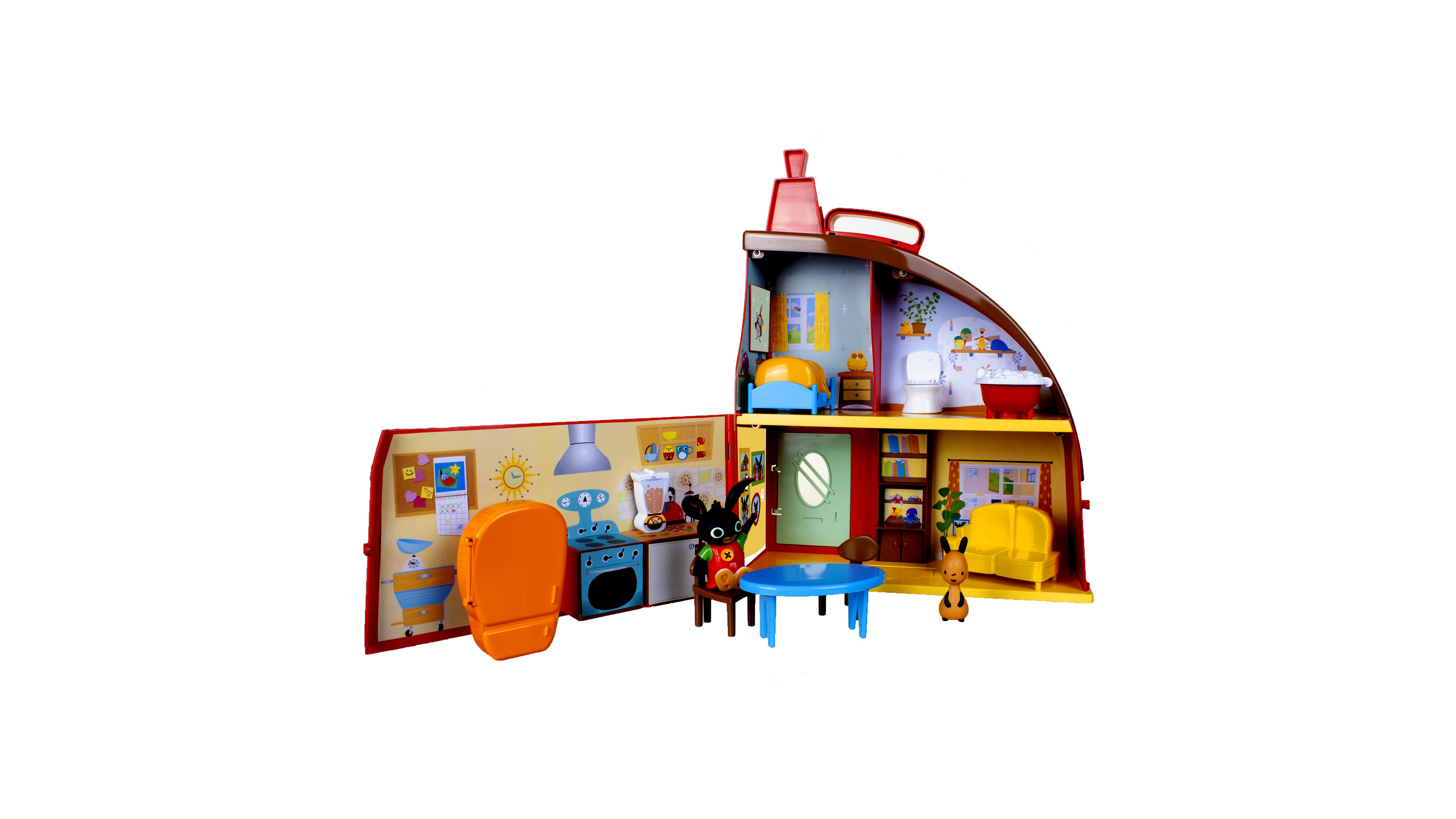 Ezzel a házikóval a kicsik felidézhetik a kedvenc részeiket, de persze új kalandokat is kitalálhatnak a dobozban lapuló Bing és Flop figurával. A ház kinyitható, így a gyerekek könnyedén tudnak a benti helyiségekben is játszani.