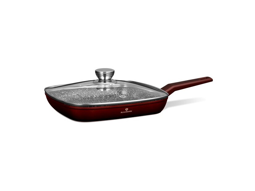 A Blaumann BL-4076 Cerastone Collection grill serpenyő fedővel jó választás, ha egy 28 cm-es, kovácsolt alumíniumból készült grill serpenyőt keres, amellyel kényelmesen készíthet serpenyőben grillezett jellegű ételeket a konyhában.