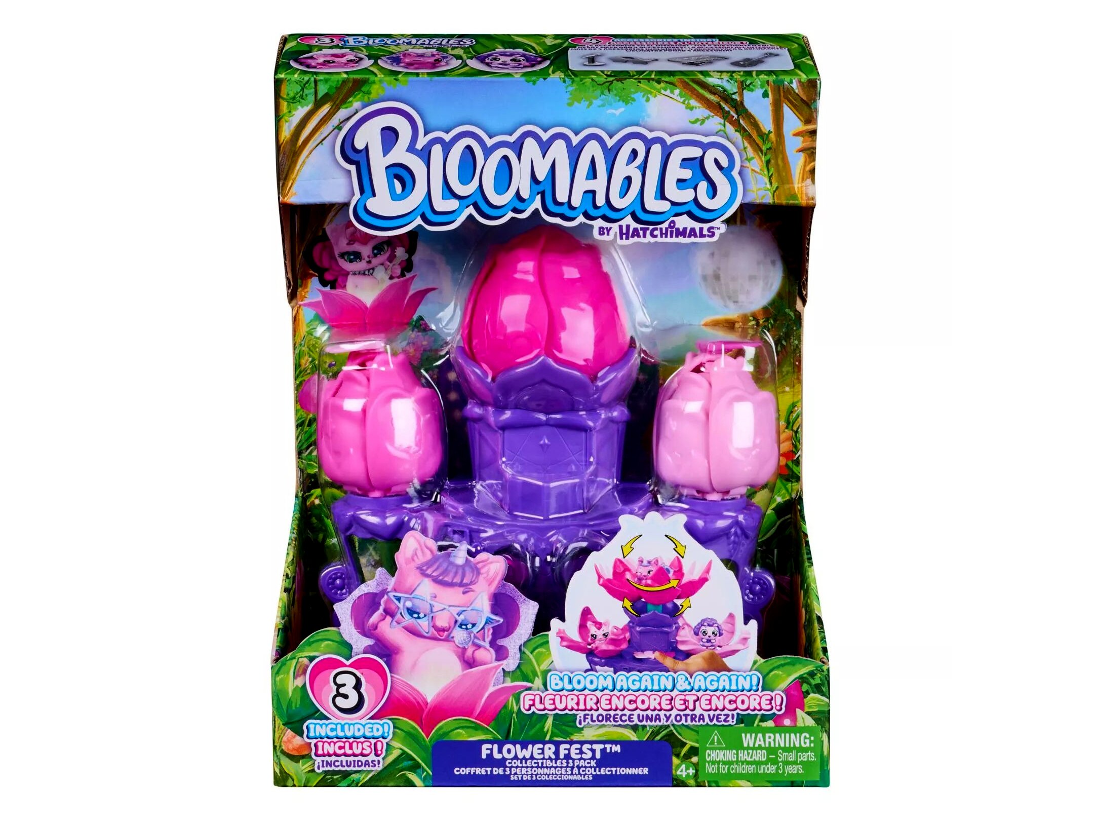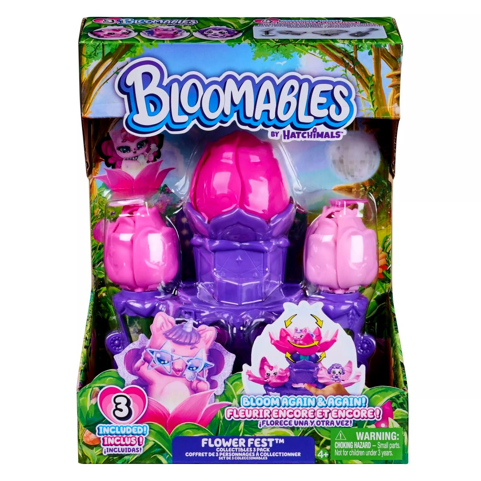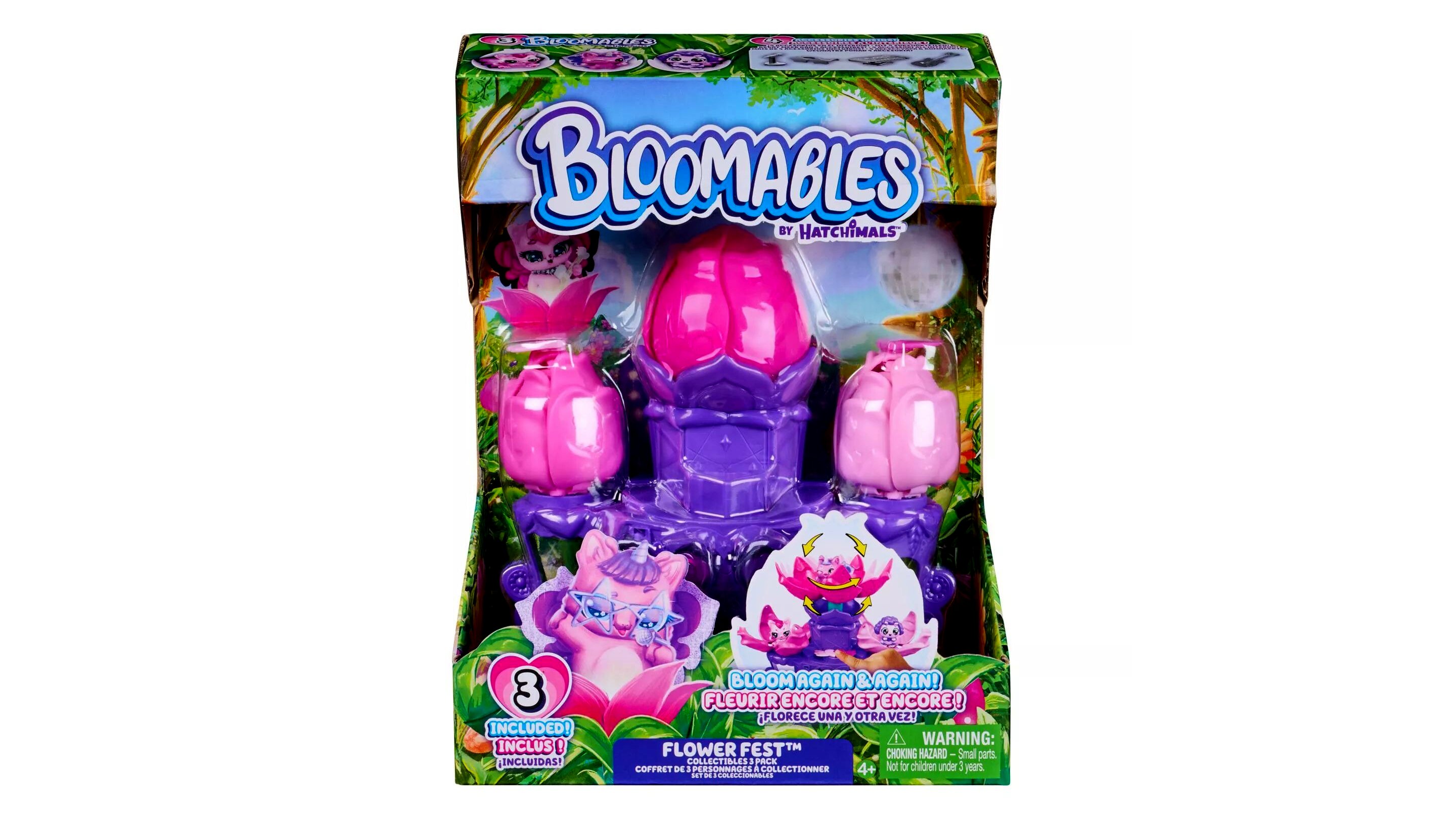 A Hatchimals Bloomables Flower Fest Collectibles 3-as csomag egy színpaddal és kiegészítőkkel érkező figurakészlet, amellyel „virágba boruló” meglepetés-nyitásokat és saját előadásokat lehet eljátszani. A készlet több ponton is aktiválható, így a kibontakozó virág-effektus újra és újra megismételhető a szerepjáték során.