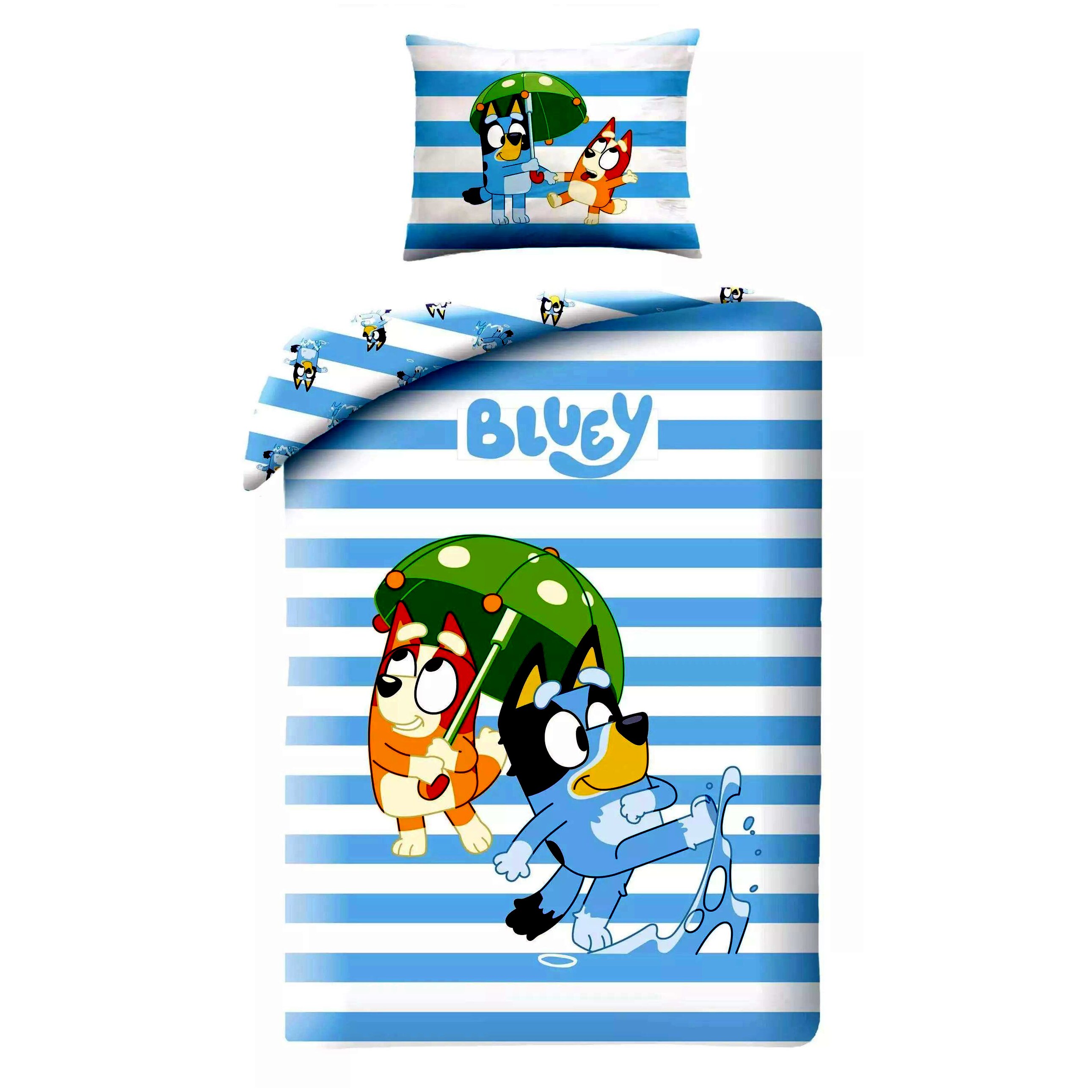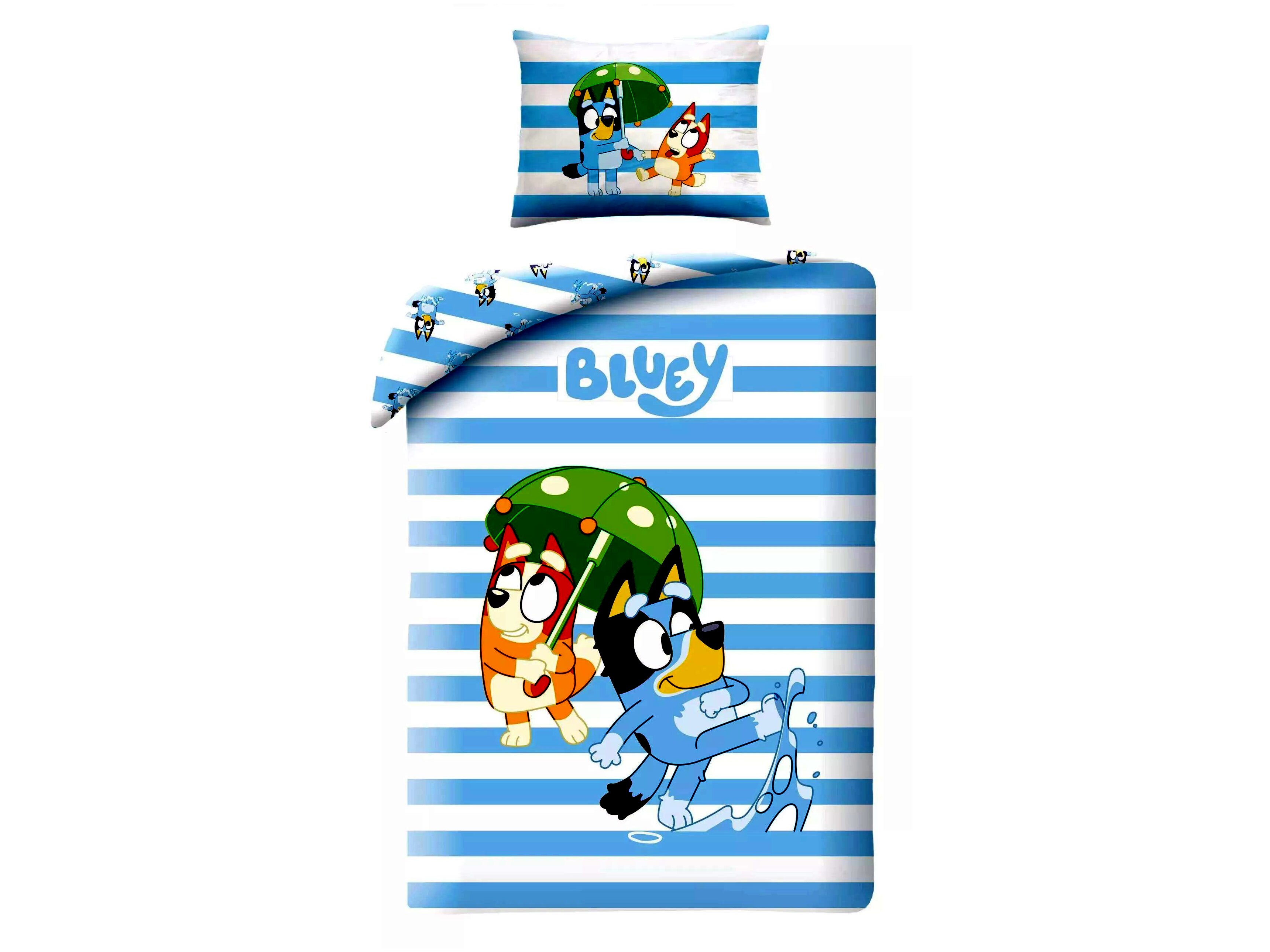 Egyszemélyes, 2 részes, Bluey karakterekkel díszített ágyneműhuzat.