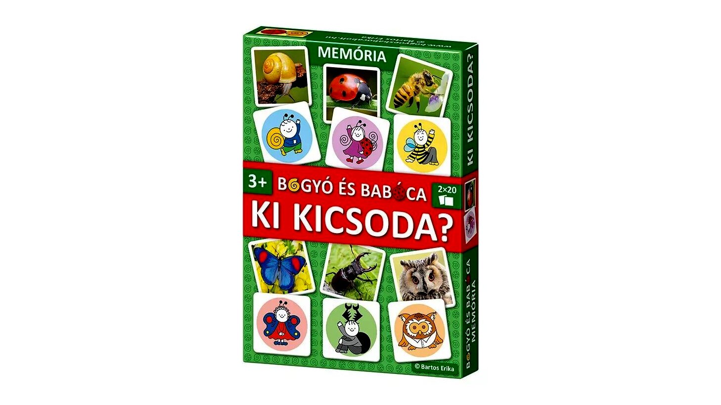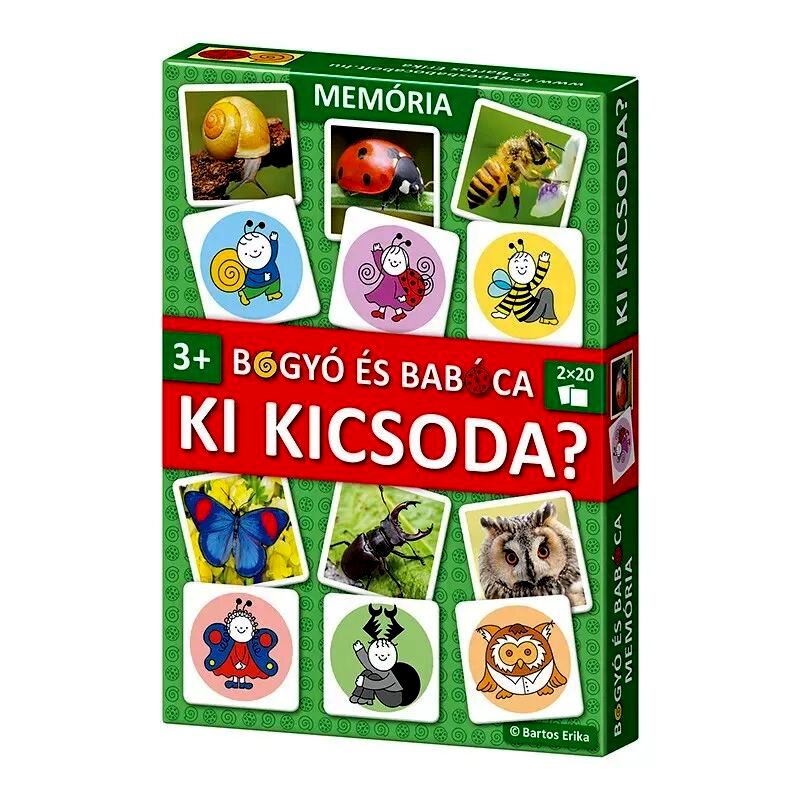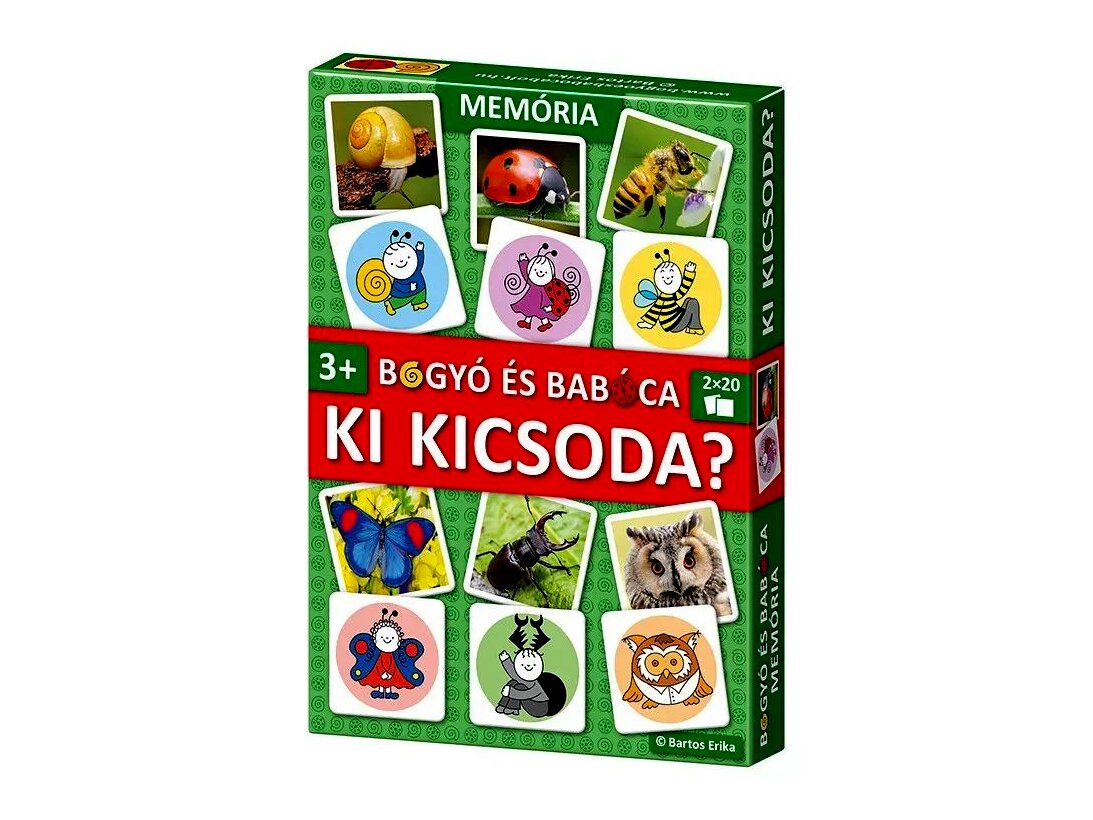 Fedezd fel a varázslatos Bogyó és Babóca világát a Ki kicsoda? társasjátékkal! Ez a különleges memóriajáték új csavar a megszokott memóriákhoz képest, hiszen nem két egyforma lapot kell keresni, hanem Babócát a valódi katicabogár fotójával, Baltazárt pedig a valódi méhecskével kell összepárosítani.Ez a játék a Bartos Erika Ki kicsoda? című mesekönyve alapján készült, amely 2025-ben elnyerte a legnépszerűbb mesekönyvnek járó Libri Irodalmi Díjat. A társasjáték nem csak szórakoztat, hanem fejleszti a gyermekek memóriáját, megfigyelőképességét és asszociációs készségét is.
