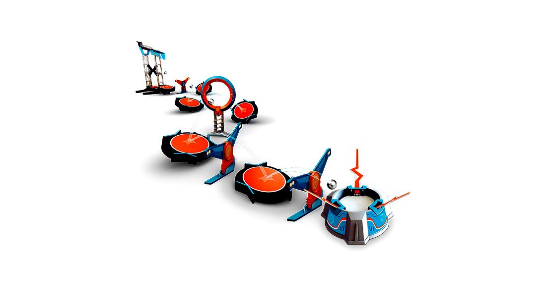 Tartalom: 1 db indítótorony 1 db trambulin 1 db kicsi labdatároló 1 db célkarika 1 db mutatványos gyűrű 4 db trambulint 2 db láb akadály 5 db fémgolyót