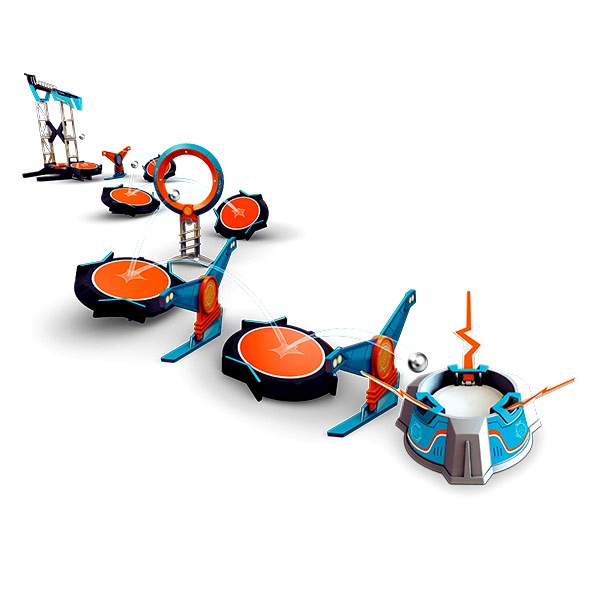 A Boomtrix egy különleges és innovatív golyópálya rendszer, ahol a gravitáció is közbejátszik. A lényeg, hogy a pályát úgy kell összeállítani, hogy a golyó akadály nélkül, a trambulinokon pattogva a célba érjen. A menet az indítótoronyból indul, és a siker pár milliméteren is múlhat. Ebben a játékban fontos a koncentráció, a szemmérték és az ügyesség is. Vegyétek irányba a célkarikát és a mutatványos gyűrűt majd indítsátok útjukra a golyókat! Ha eltaláljátok a sebességet és az irányt, könnyedén leküzditek az akadályokat!