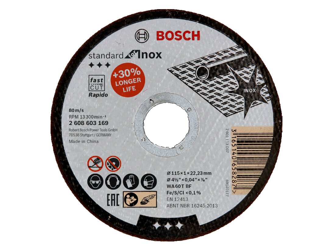 A Standard for Inox vágótárcsa a megbízható választás rozsdamentes anyagok megmunkálásához. A tárcsa kifejezetten a rozsdamentes anyagokhoz használható alumíniumoxidból készül. Nem tartalmaz vas- és kéntartalmú, sem klórozott töltőanyagot. Ez a tárcsa rozsdamentes anyagok vágásához használható. Felszerelhető a Bosch sarokcsiszolókra.