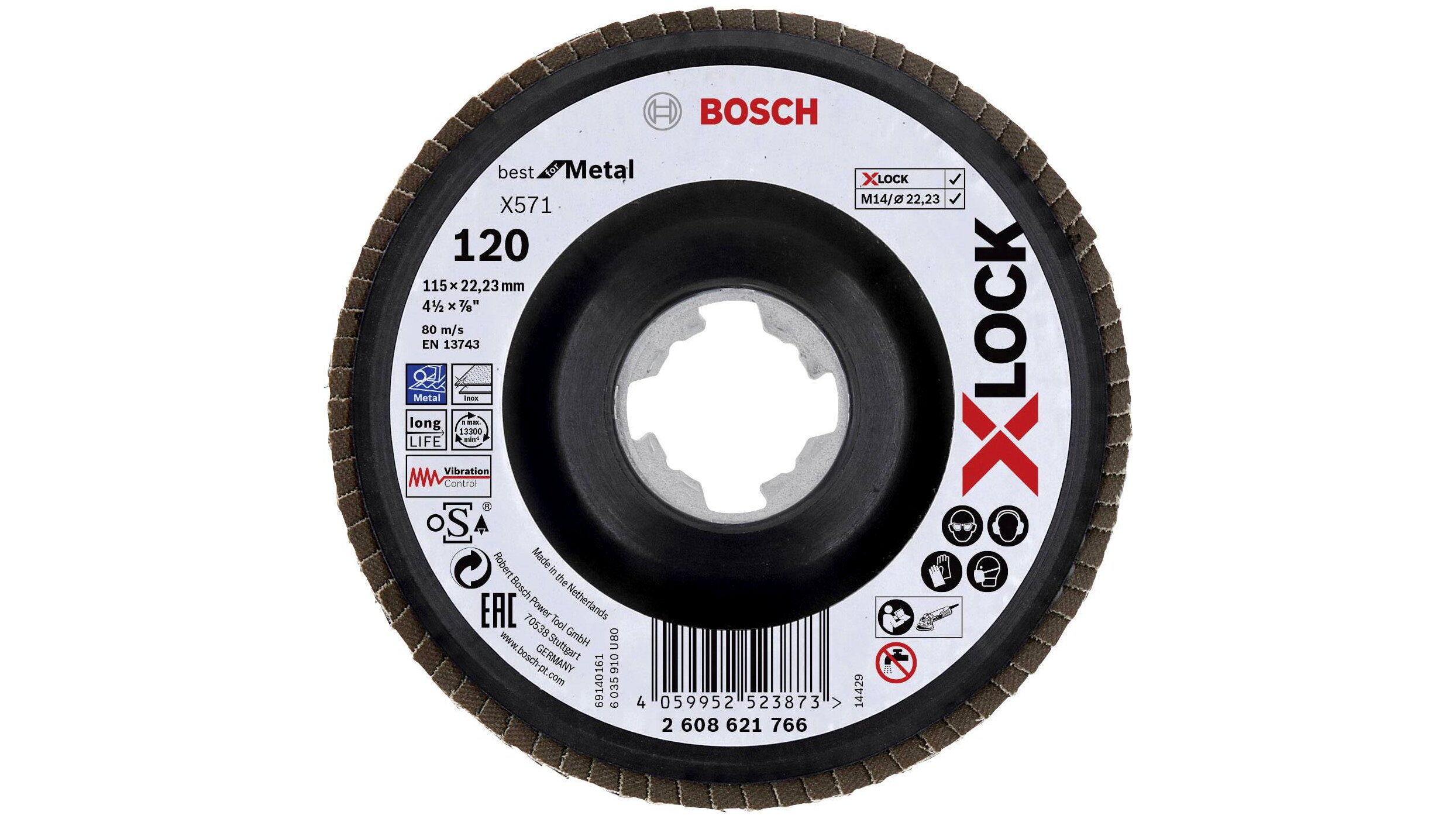 A rendkívül hosszú élettartamú X-LOCK X571 Best for Metal legyezőtárcsa fémek megmunkálására használható. Kiváló minőségű cirkónium-dioxid/enyhén töredező alumínium-oxid szemcsekeverék bevonata szívós és kopásálló a hosszan tartó fémmegmunkáláshoz. A tárcsa hordozója műanyagból készült, hajlított és egyenes változatban kapható.